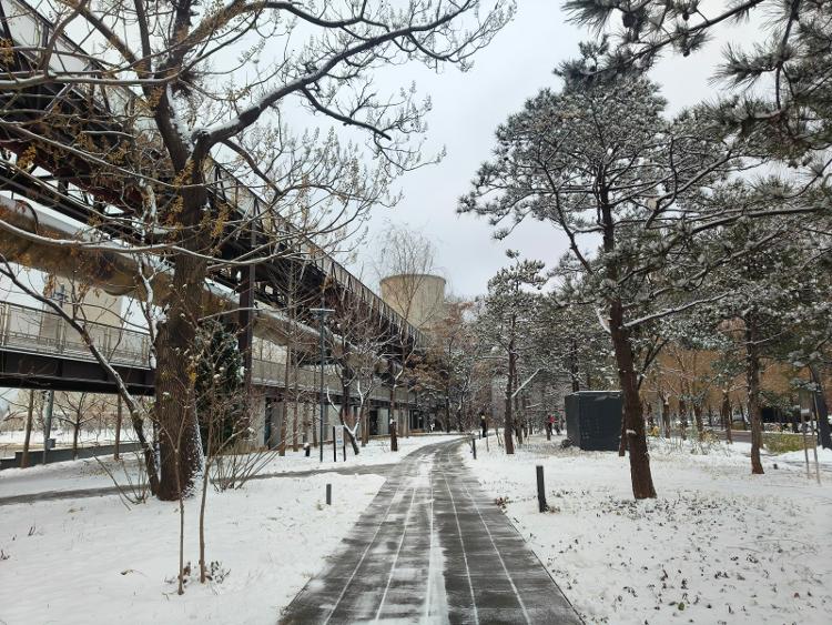 据北京市气象台预报,12月10日,北京迎来今年冬天的首场大范围明显降雪。今天(12月11日)一早,海报新闻记者分别来到雍和宫、首钢园、八里桥公园等地,此时,公园内一片银装素裹,地面、树木上积雪都比较明显。