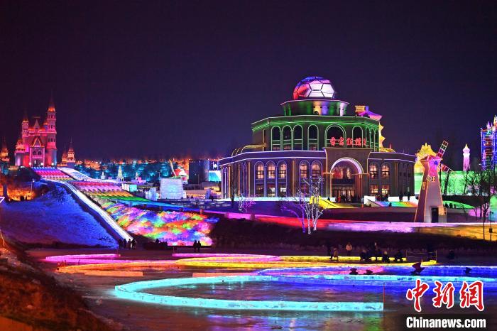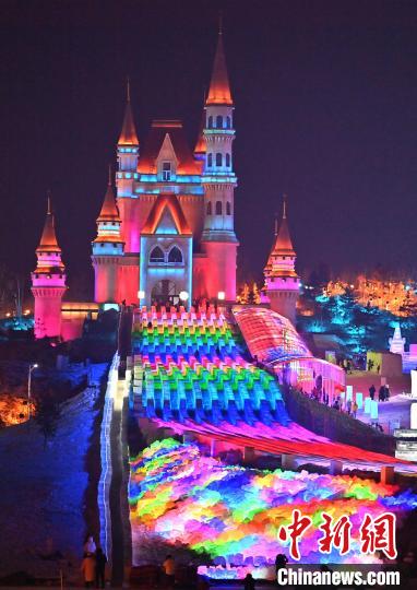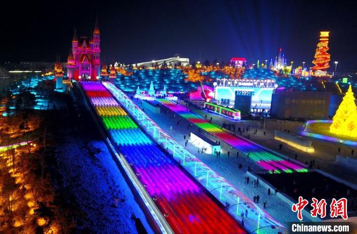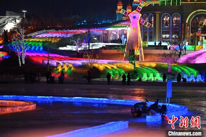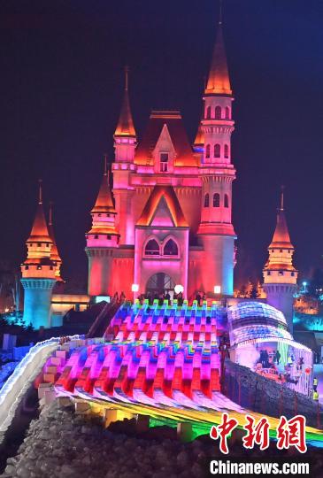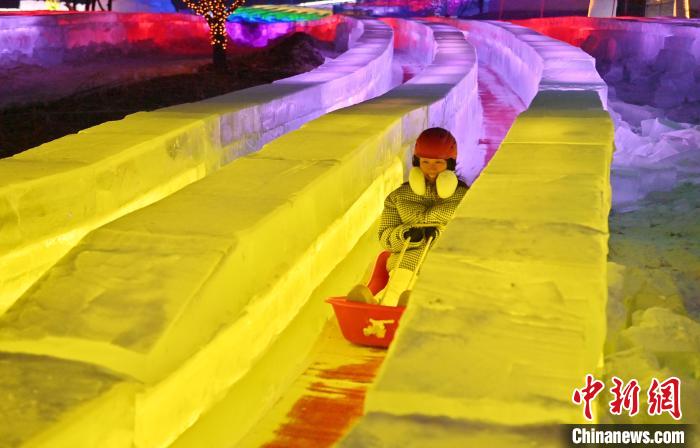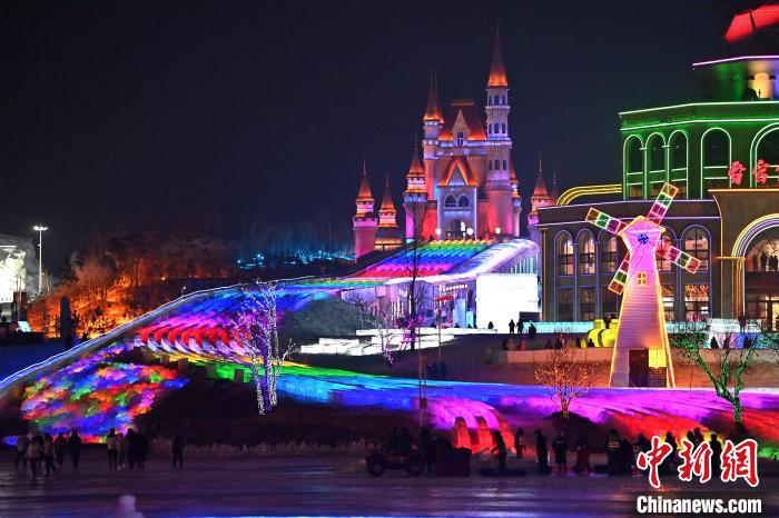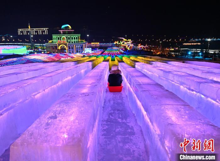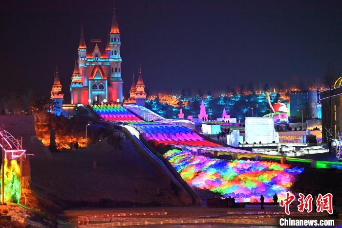 12月12日晚,长春冰雪新天地开门迎客,512.6米超长冰滑梯亮相,吸引游客体验。