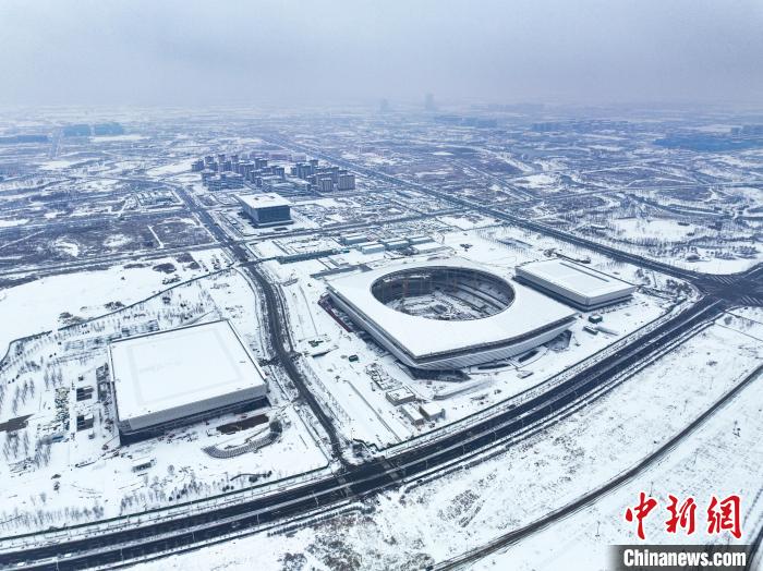 12月11日,航拍雄安新区雄安体育中心项目雪景。胡忠摄