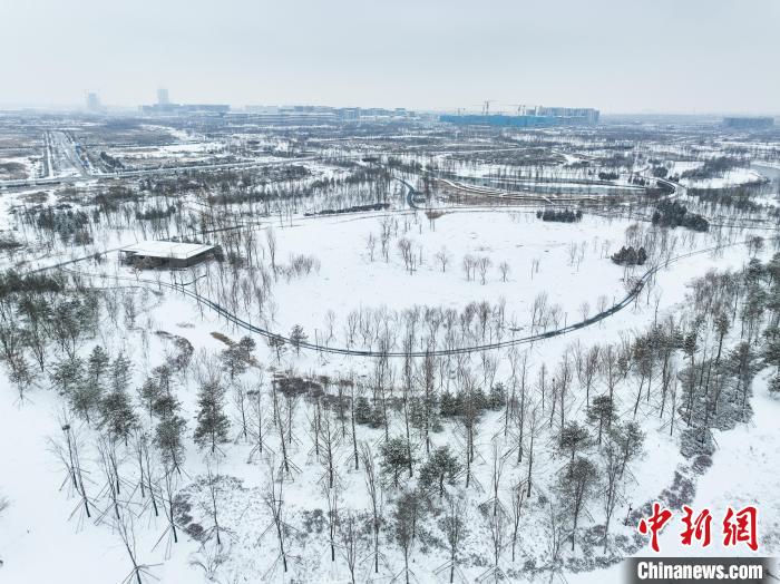 12月11日,航拍雄安新区中央绿谷项目雪景。胡忠摄