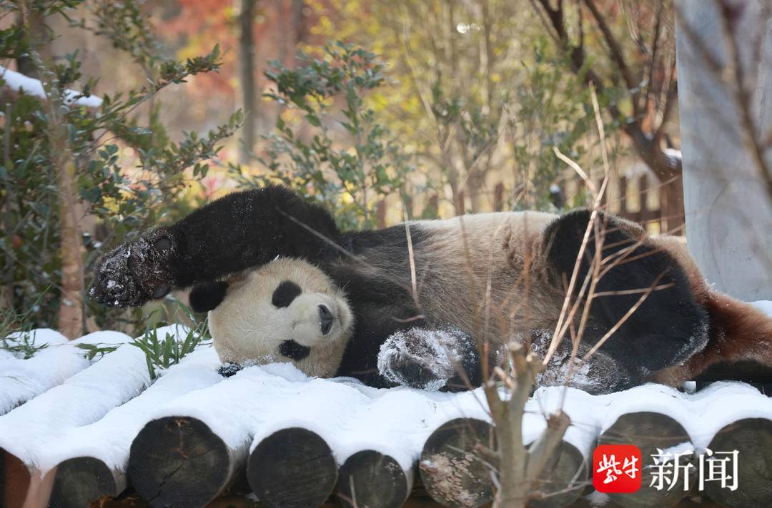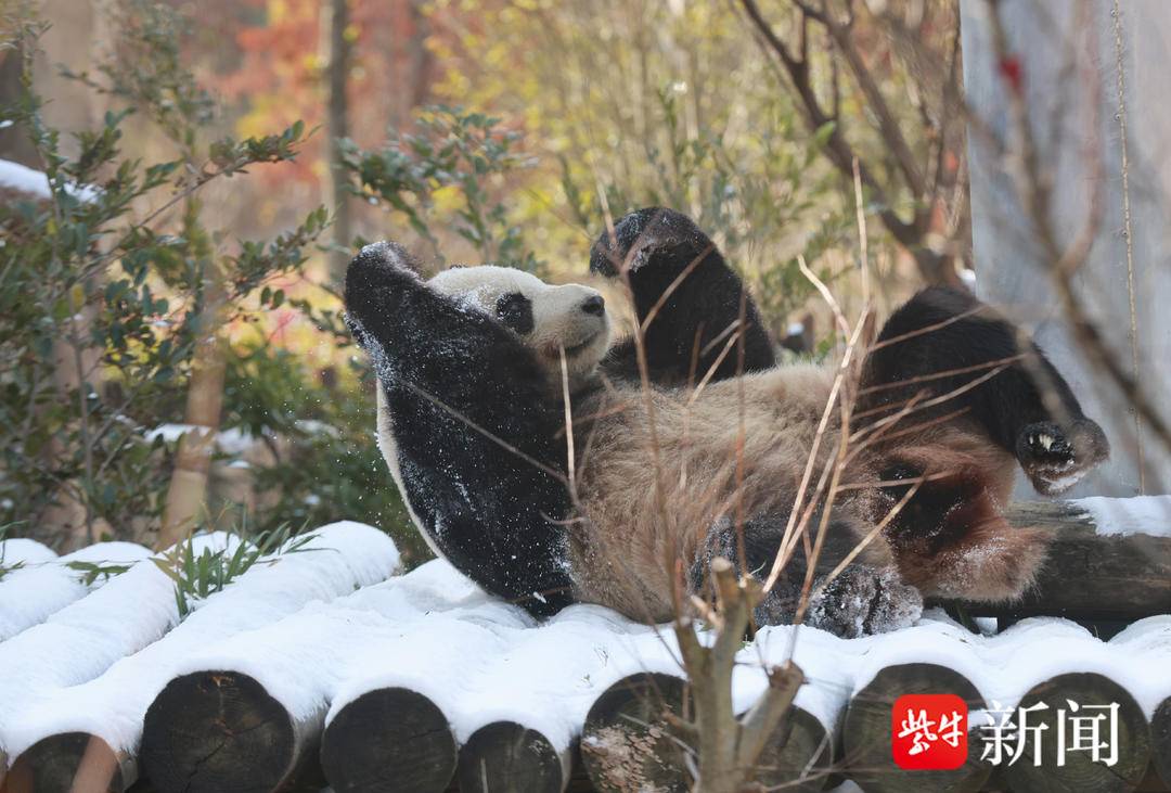 12月16日,经过一夜降雪,南通森林野生动物园的大熊猫星辉和星繁来到户外运动场开启“玩雪模式”,两只“小团子”在雪地里打滚,坐在雪地里品尝雪花的滋味...沉浸式玩雪,撒欢,十分可爱……