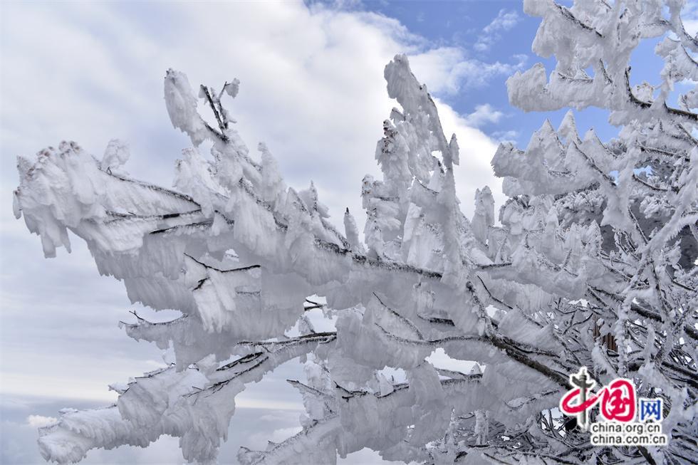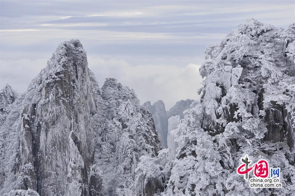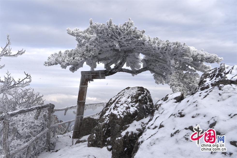 黄山雾凇是非常难得的自然奇观,它是指低温时空气中水汽直接凝华,或过冷雾滴直接冻结在黄山松上的乳白色冰晶沉积物。(姚育青)