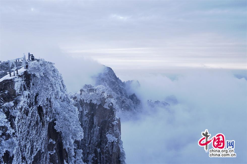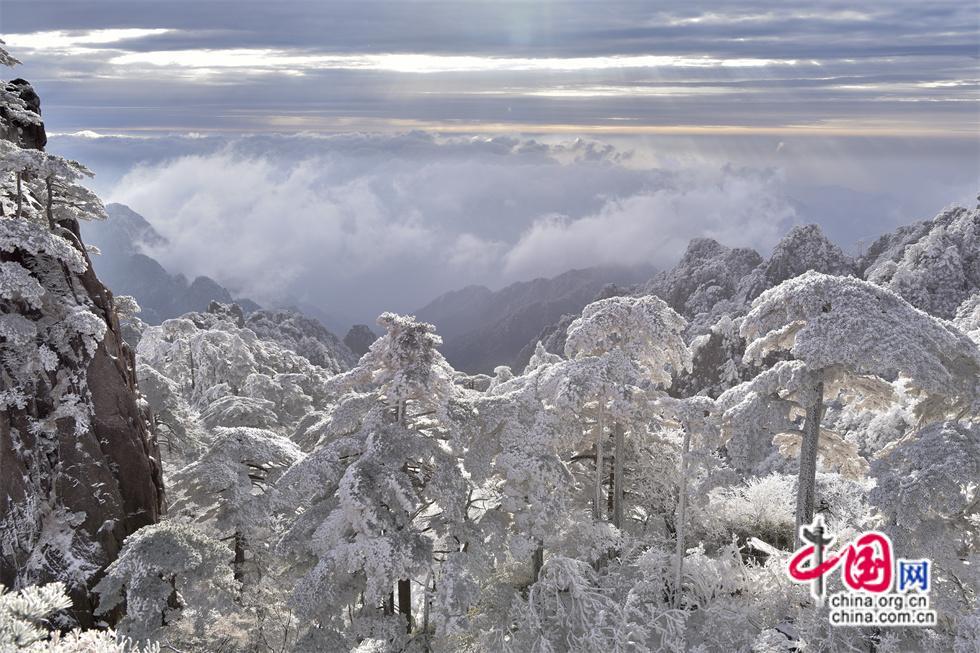 12月16日,安徽黄山风景区出现雪景、雾凇、云海等壮观景色。