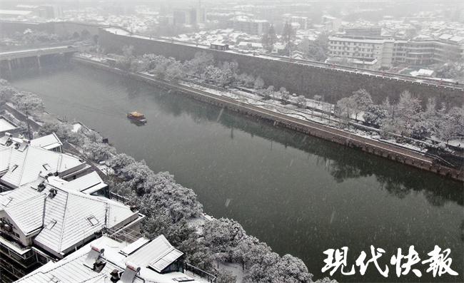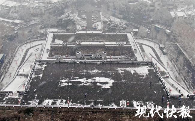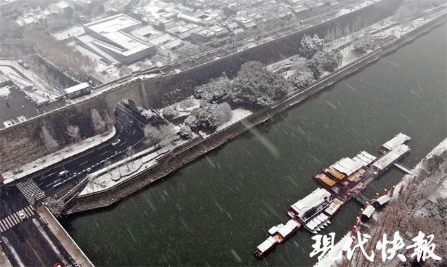 秦淮河畔,跨越 600 多年的中华门,时间仿佛也随着雪花的飘落凝固了。