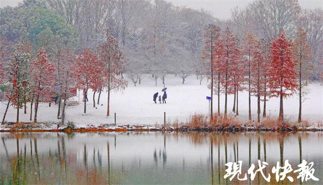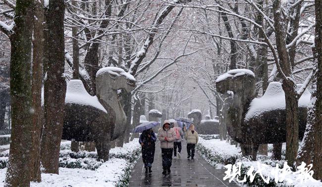 燕雀湖畔、明孝陵间,人们已经迫不及待地沉浸式赏雪。
