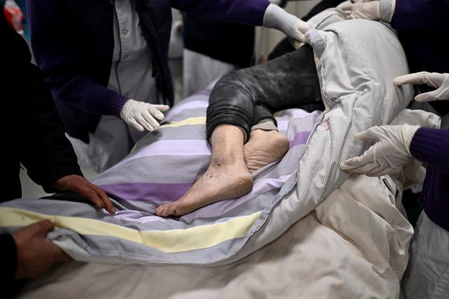 12月19日,在甘肃省临夏回族自治州积石山县人民医院,地震伤员接受诊疗。新华社记者 范培珅 摄