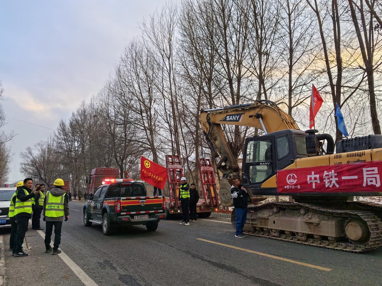 中铁一局兰合铁路项目地处临夏州境内,距震中仅50公里。灾情发生后该项目部迅速成立抗震抢险救援队,配备挖掘机、装载机、拖板车、指挥车、物资运送车等机械20余台,救援人员近40人,奔赴震中。