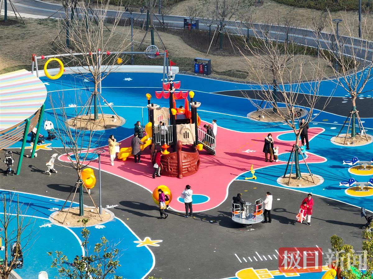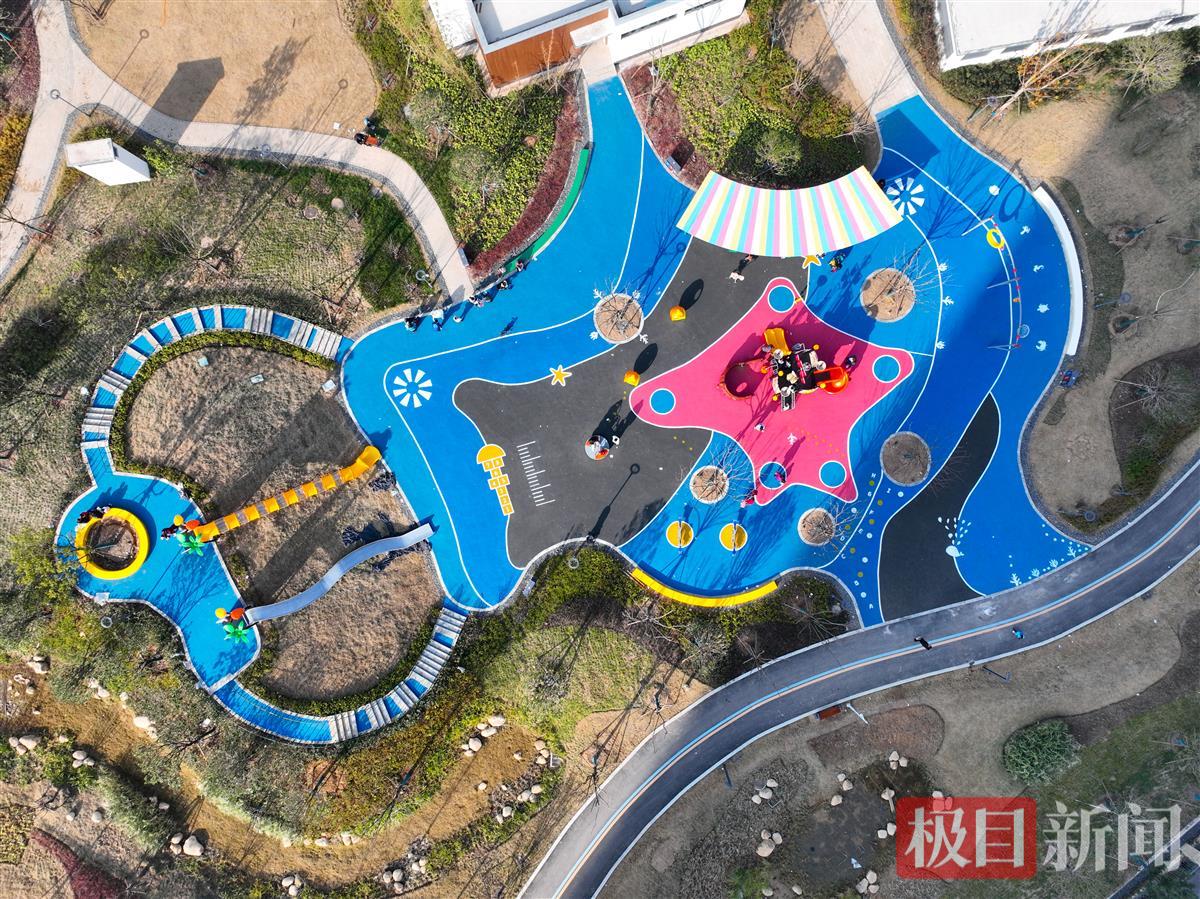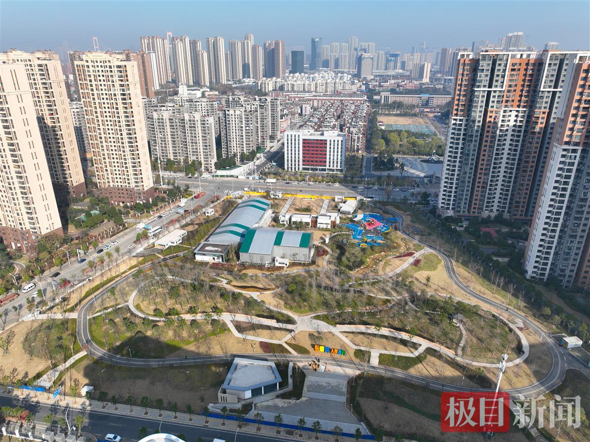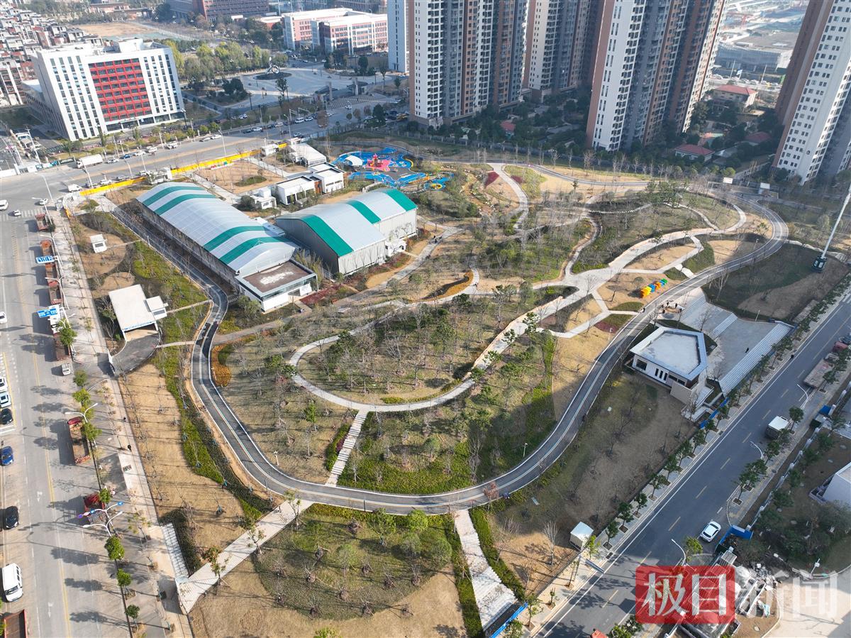 12月26日,记者在高处俯瞰已建成的张家湾人民公园,环形步道串联起公园各个功能特色区,儿童游乐园、室内篮球场等设施一应俱全,该公园位于武汉市洪山区白沙三路与光霞西路交会处,面积相当于5个标准足球场大小。