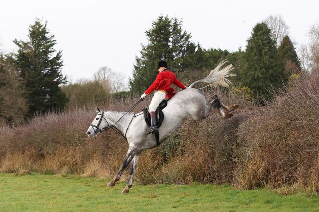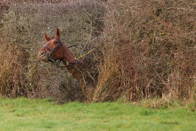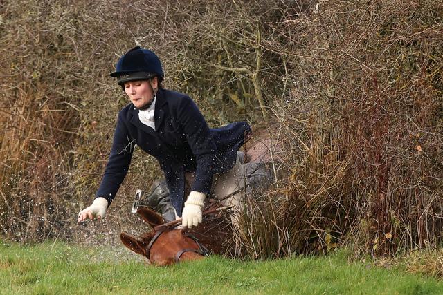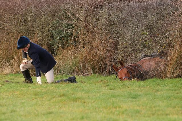 12月26日,在英国奇丁斯通,参加传统的节礼日狩猎活动的马摔倒在地。新华社/路透
