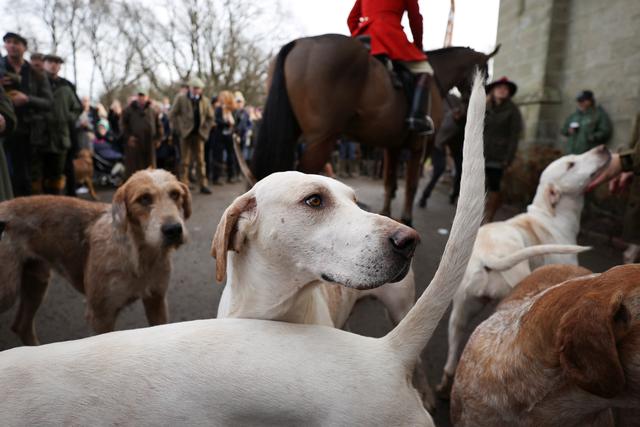 12月26日,在英国奇丁斯通,猎犬跟随主人参加传统的节礼日狩猎活动。新华社/路透