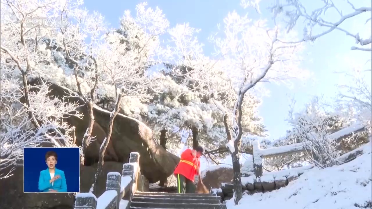 九华山风景区索道公司、环卫部门也组织人员清扫步道积雪,保障游客游览安全。