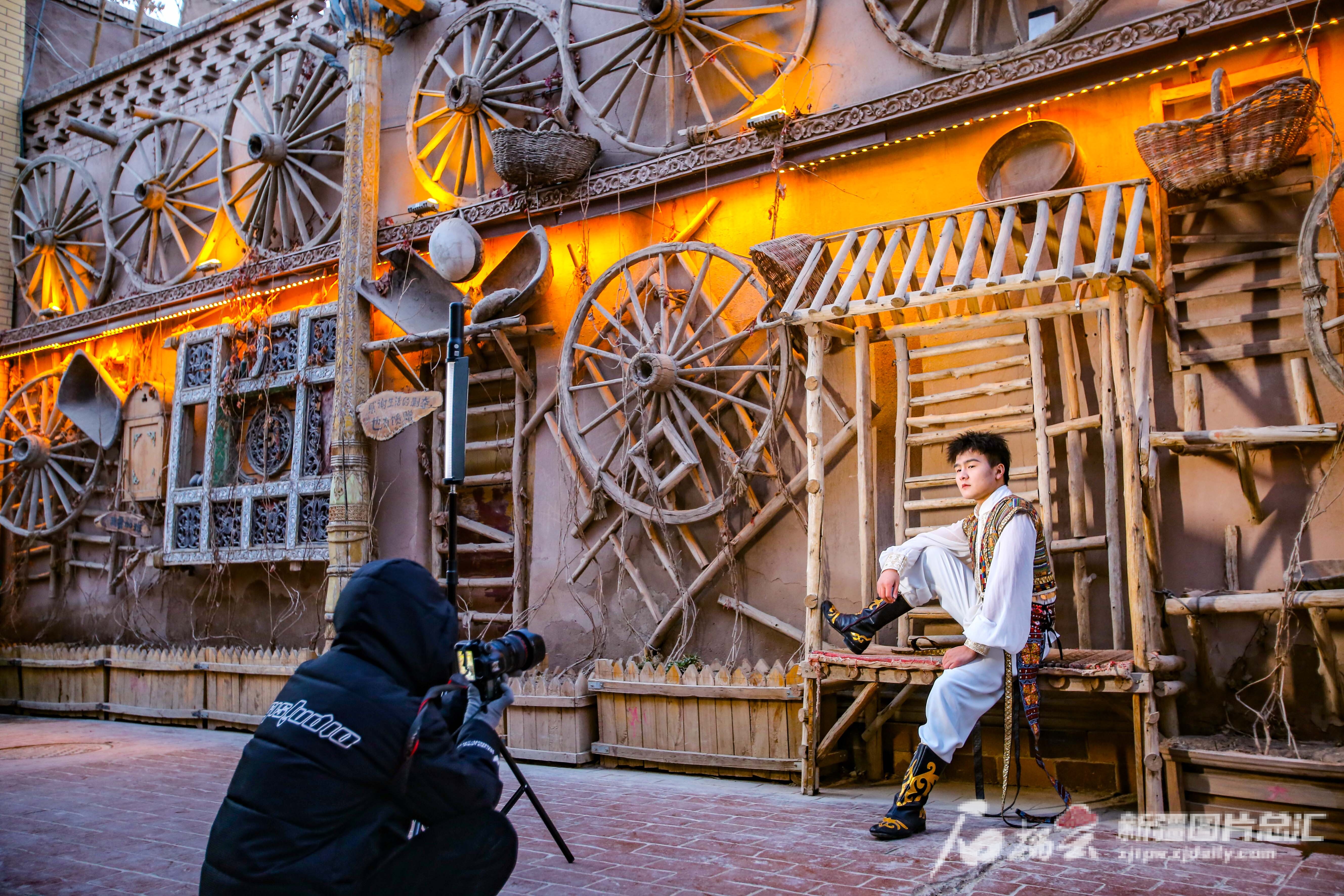 2023年12月31日,游客在喀什古城景区进行旅拍。