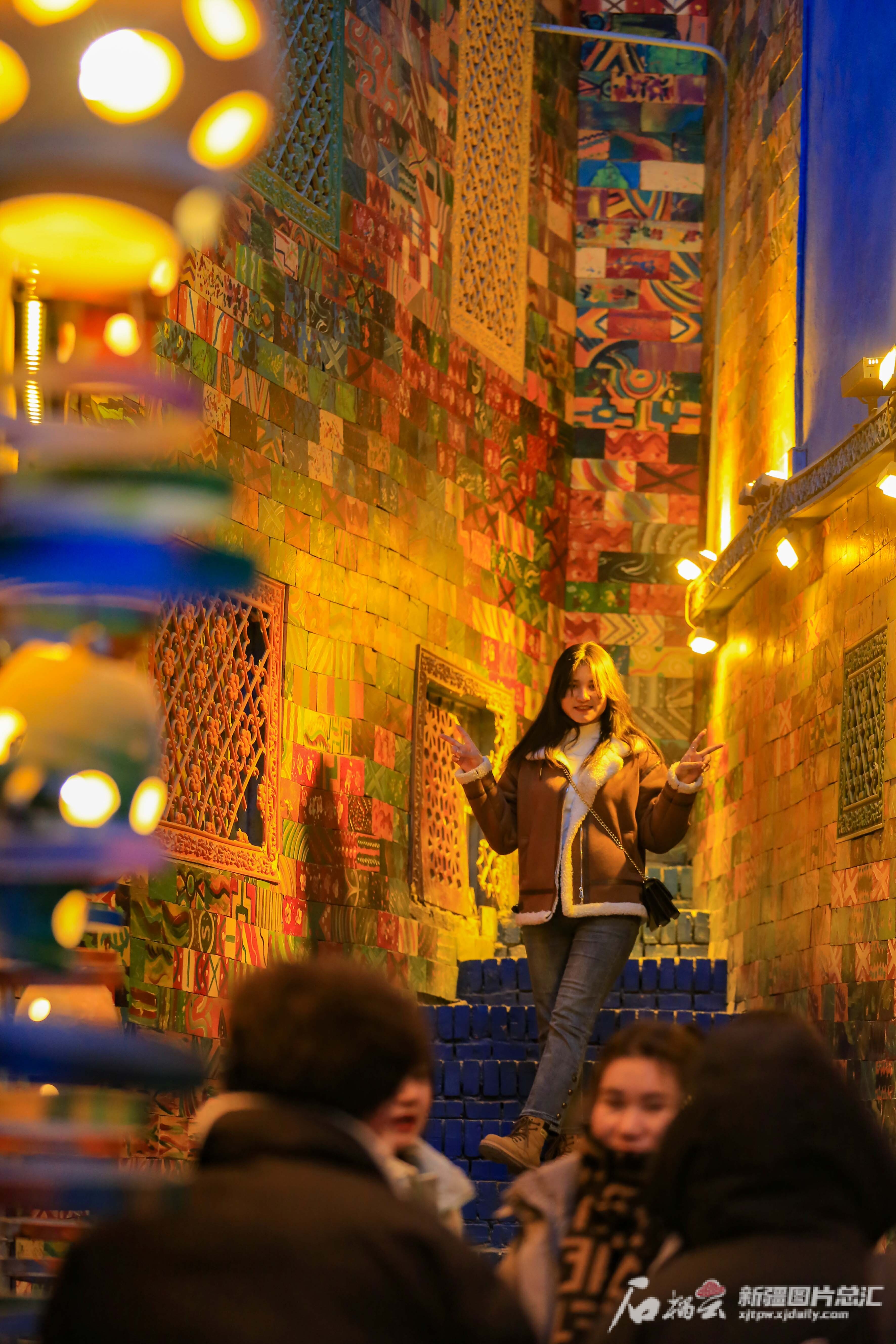 2023年12月31日,游客在喀什古城景区拍照留念。