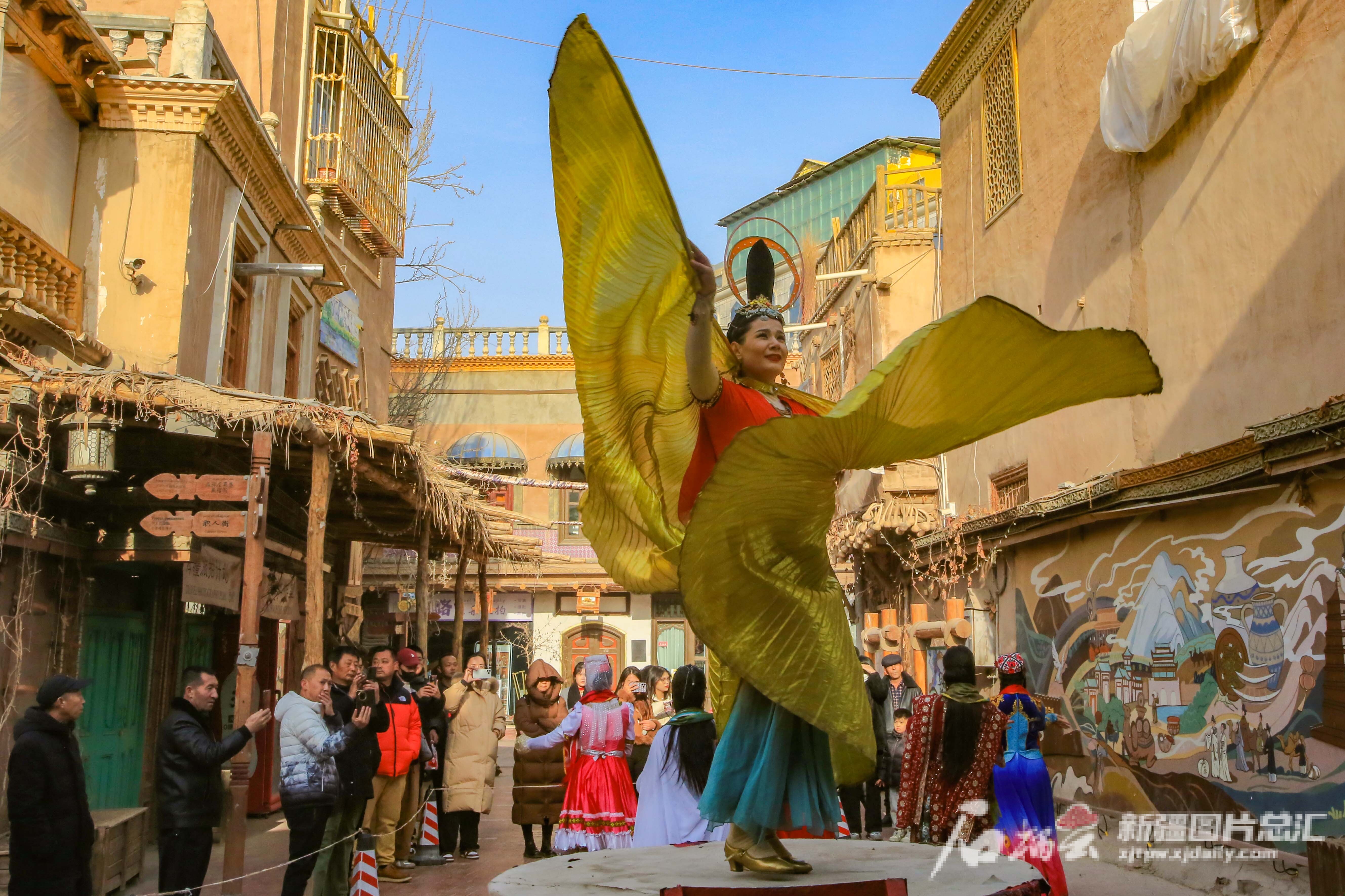 2024年1月2日,演员在喀什古城景区进行民俗表演。