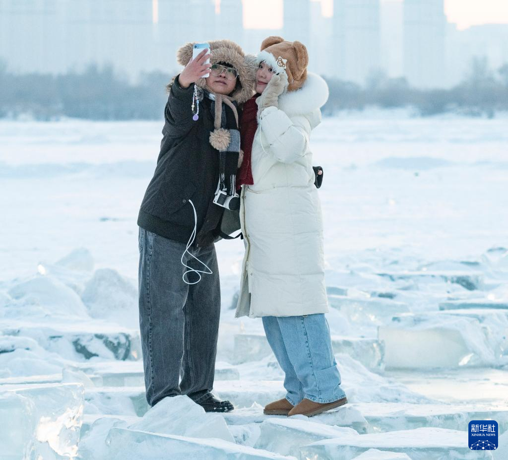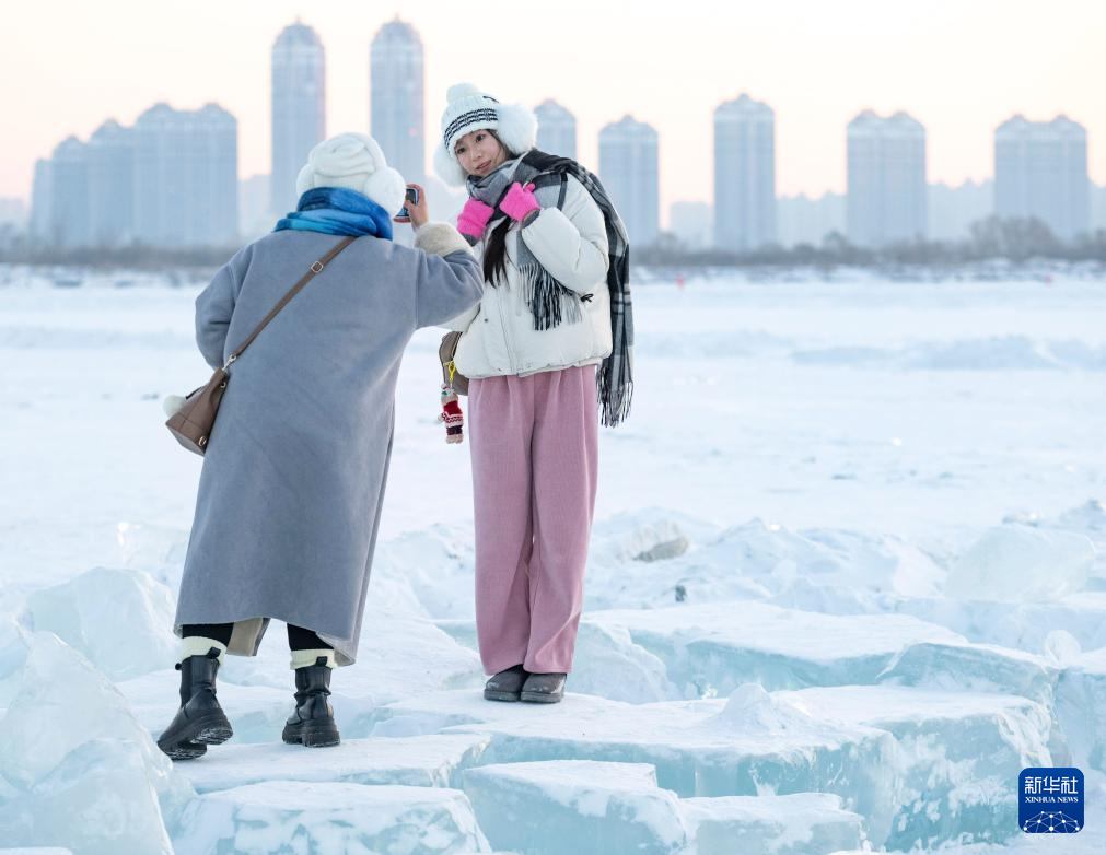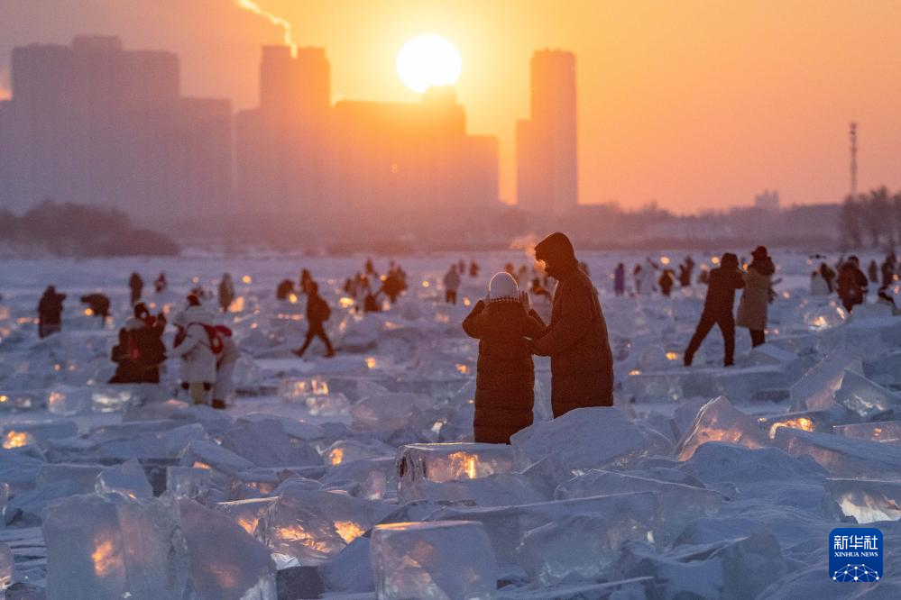 眼下,“冰城”哈尔滨市正值冰雪旅游旺季。在松花江哈尔滨段,一处停用的采冰场由于堆积的冰块数量多、纯净度高,被游客称为“钻石海”,成为新的“网红”打卡点。