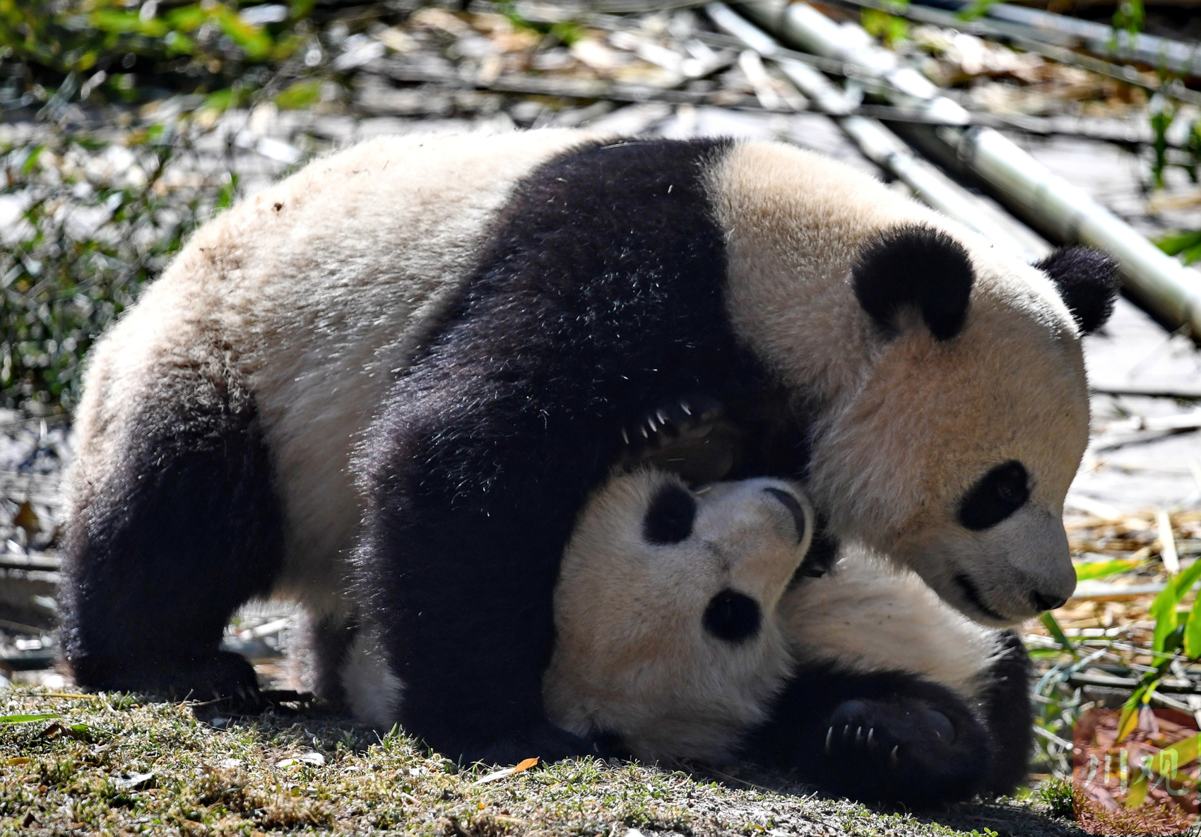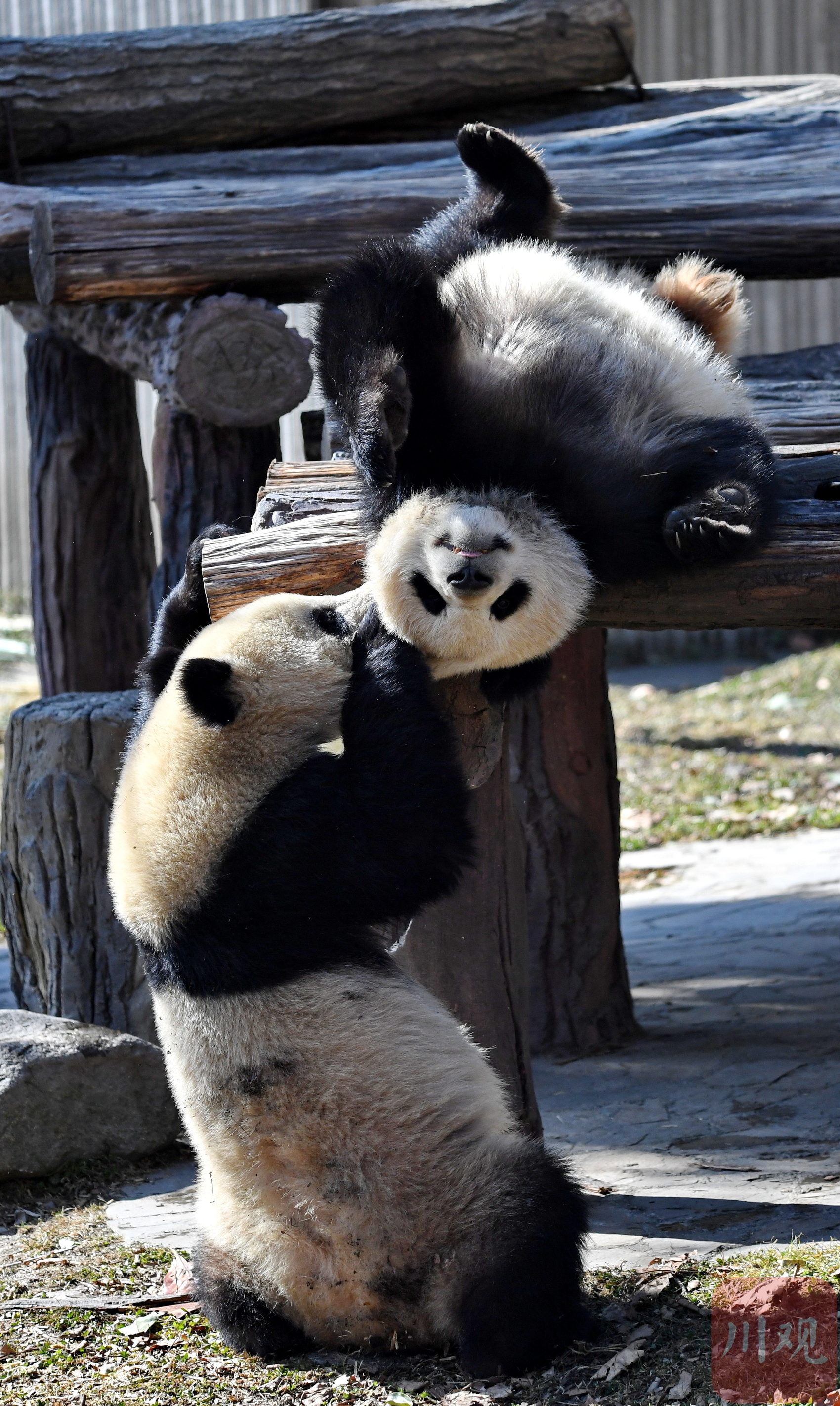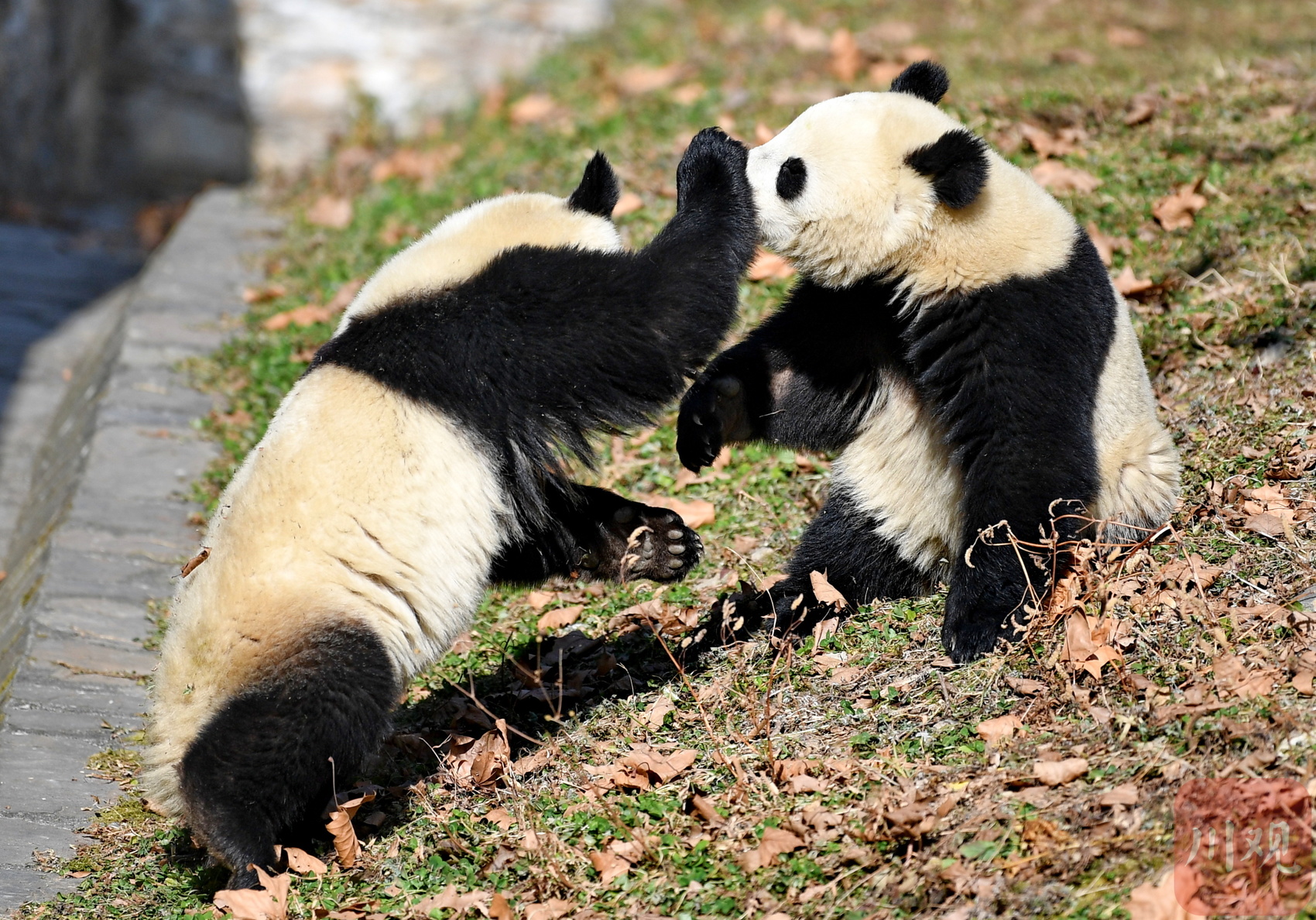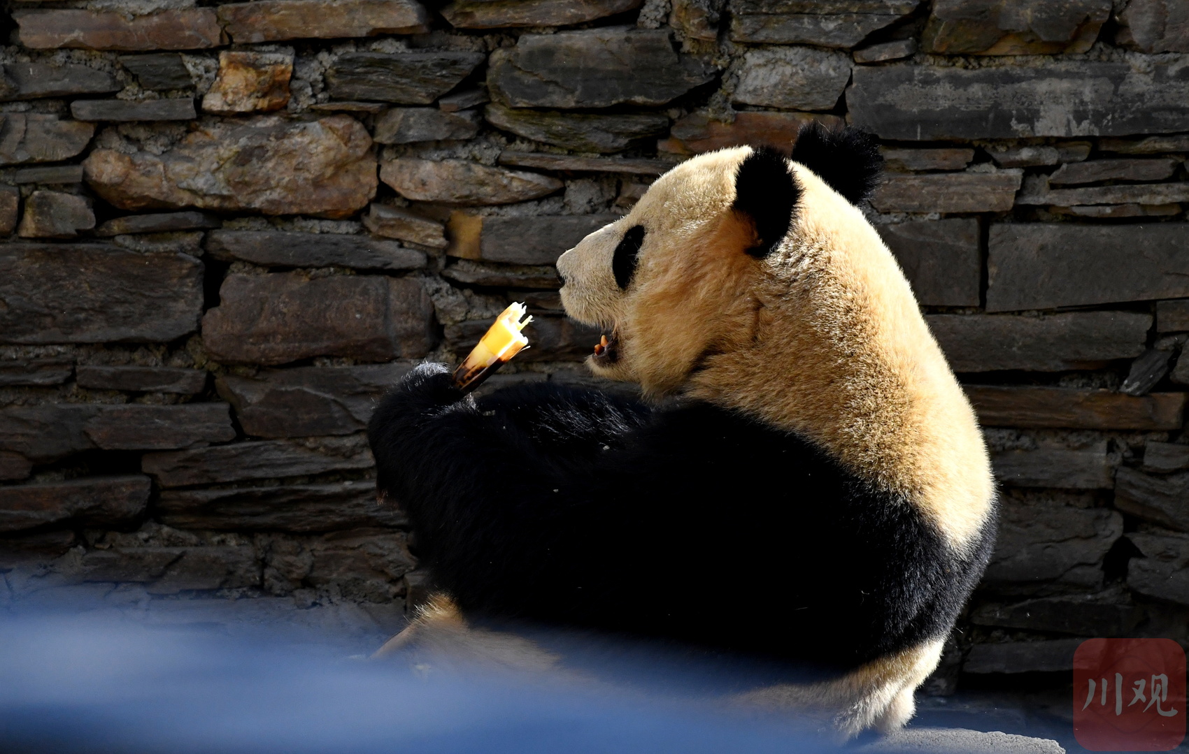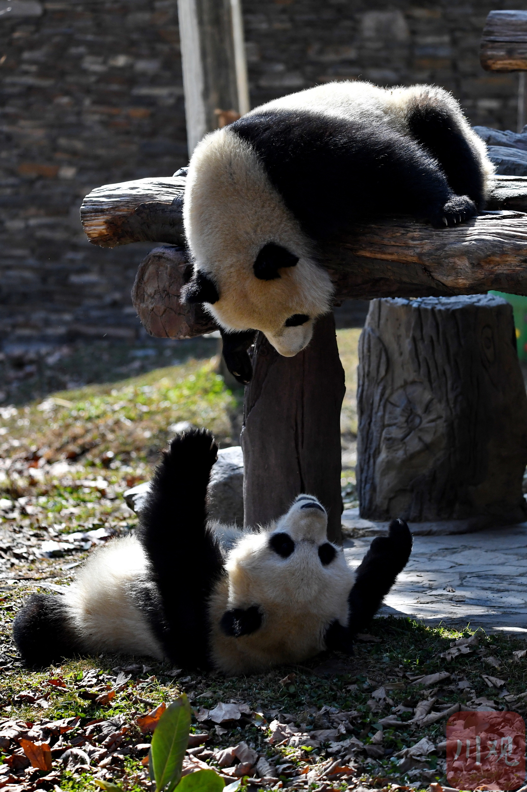 2024年1月6日,位于四川省阿坝州汶川县的卧龙中华大熊猫苑神树坪基地内一片冬日暖阳,大熊猫在享用美食,嬉戏玩耍,萌态十足惹人爱,吸引众多游客驻足围观。