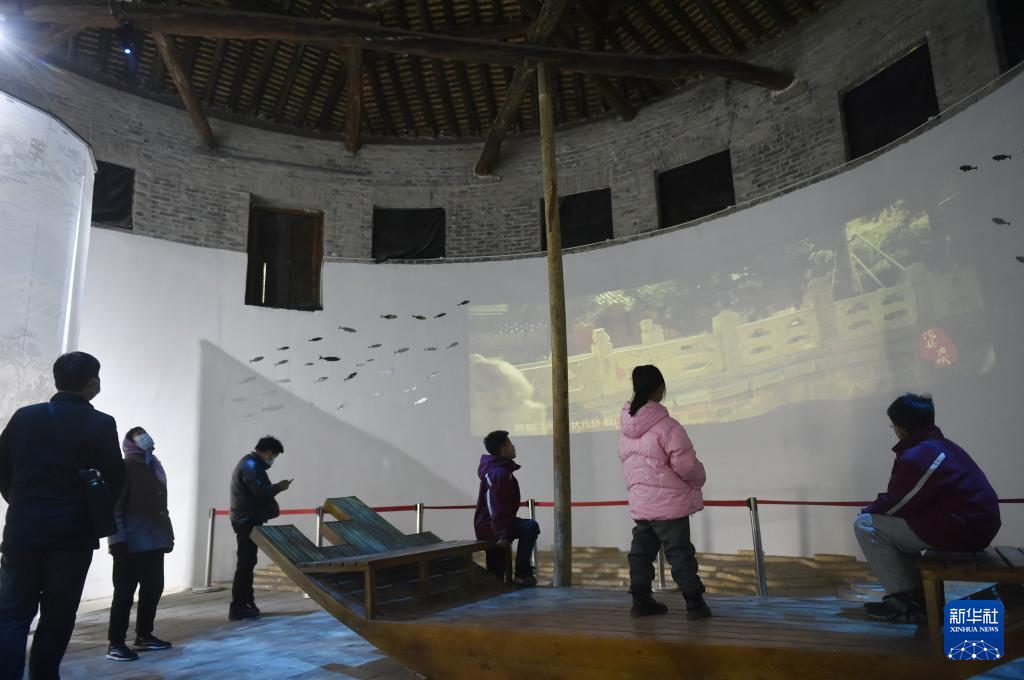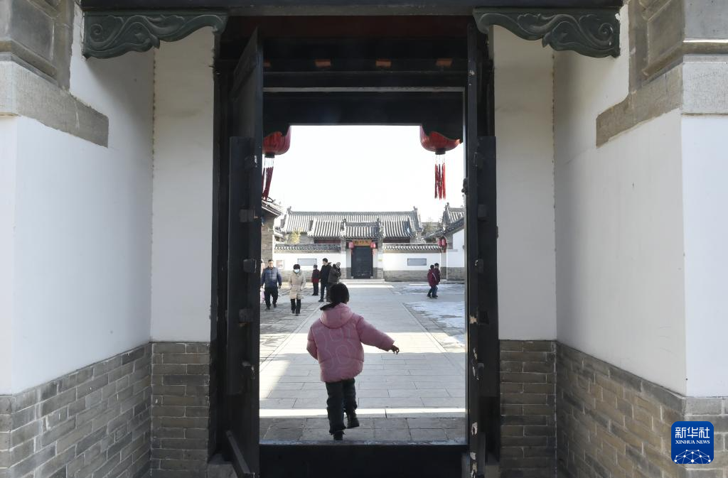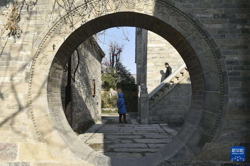 1月6日,游客在浚县古城的土圆粮仓内游览。