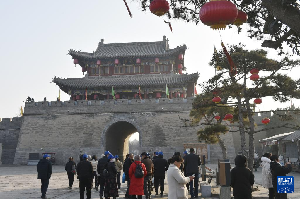 1月6日,游客在浚县古城游览。