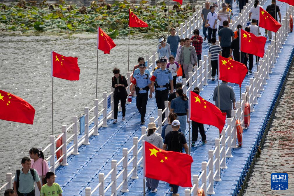 2023年10月1日,长江航运公安局镇江分局泰州派出所民警在泰州海军舰艇文化园执勤,保障节日期间游客安全。