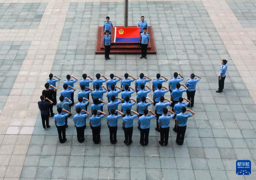 2023年7月20日,长江航运公安局镇江分局组织新入职民警开展入警宣誓。
