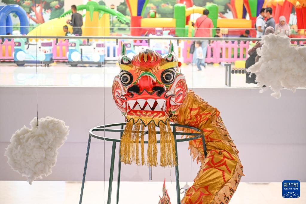 这是1月7日在马来西亚雪兰莪州巴生一家购物中心拍摄的以中国龙为主题的装饰。