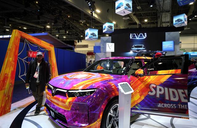 1月11日,人们在美国拉斯维加斯消费电子展越南电动汽车制造商VinFast展台参观。新华社记者 吴晓凌 摄