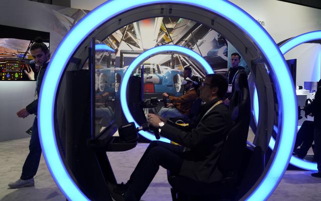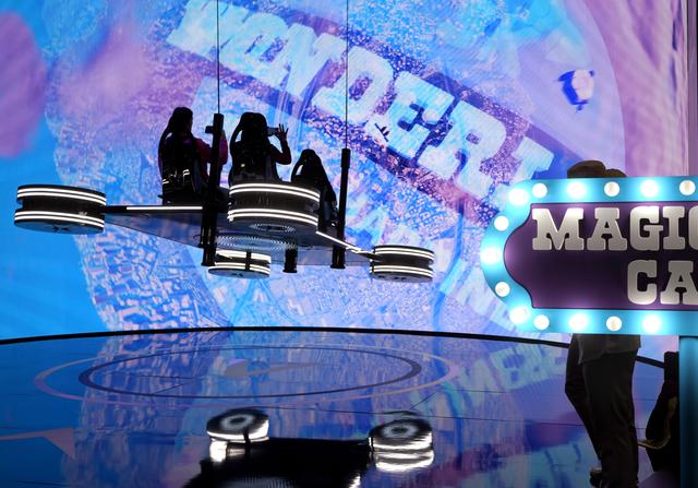 1月11日,人们在美国拉斯维加斯消费电子展SK Wonderland展台体验魔毯项目。新华社记者 吴晓凌 摄