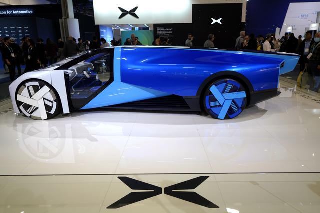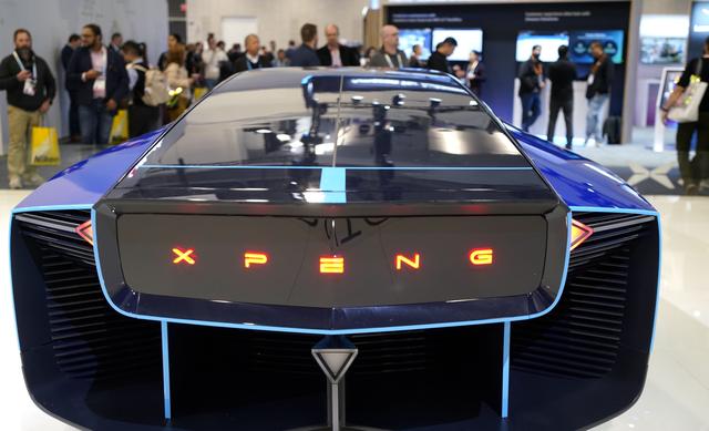 1月11日,人们在美国拉斯维加斯消费电子展小鹏公司展台观看电动飞行汽车Aeroht。新华社记者 吴晓凌 摄