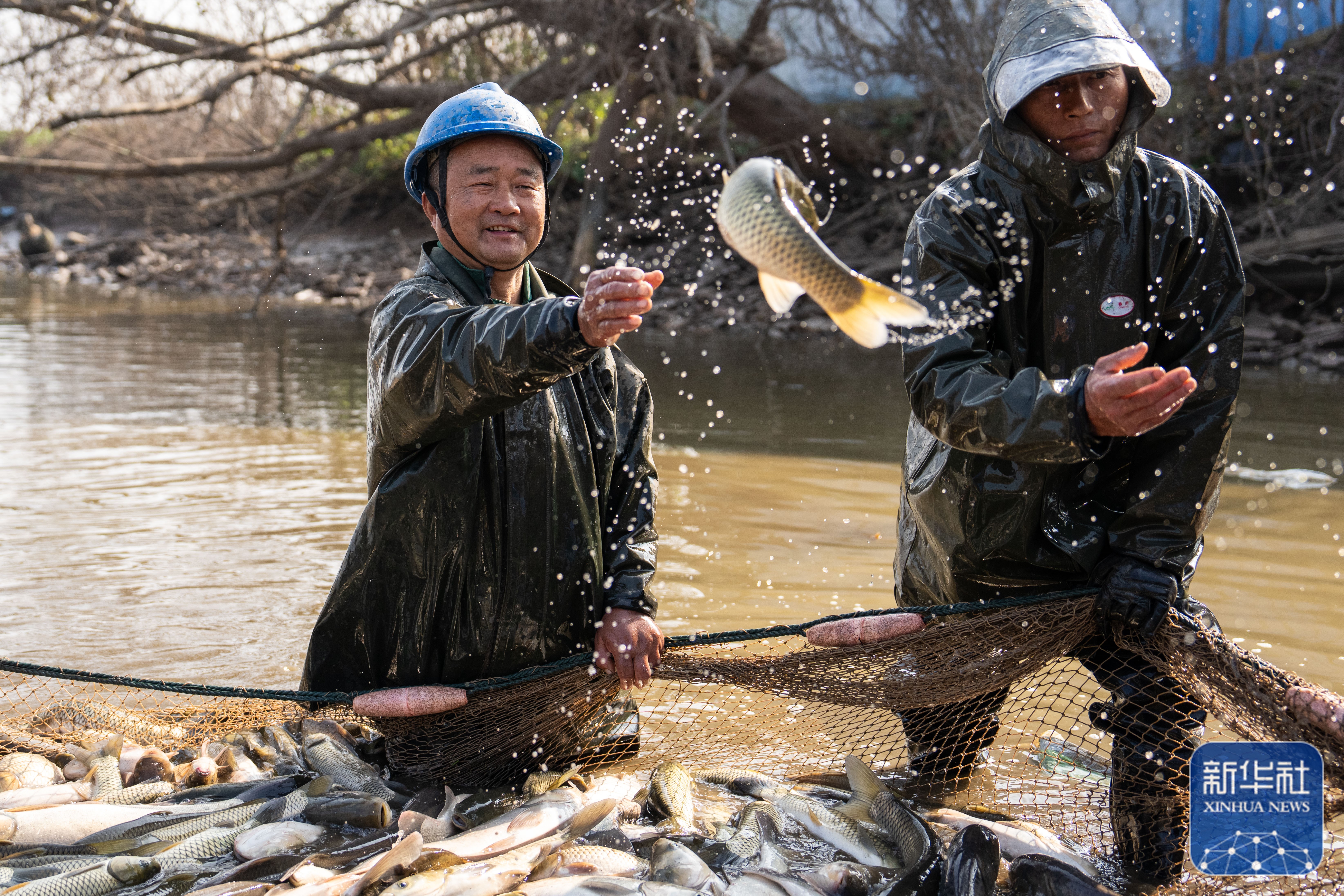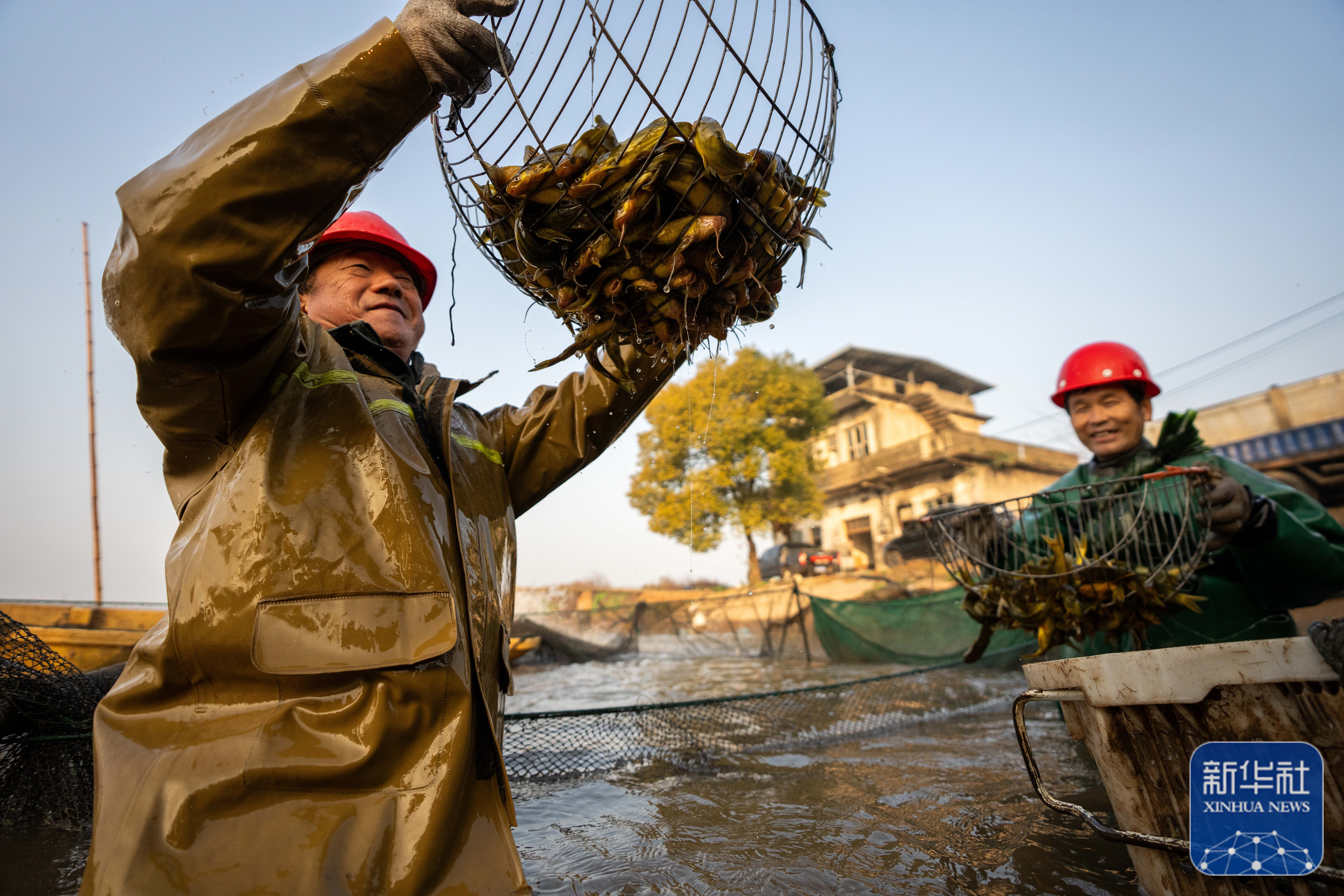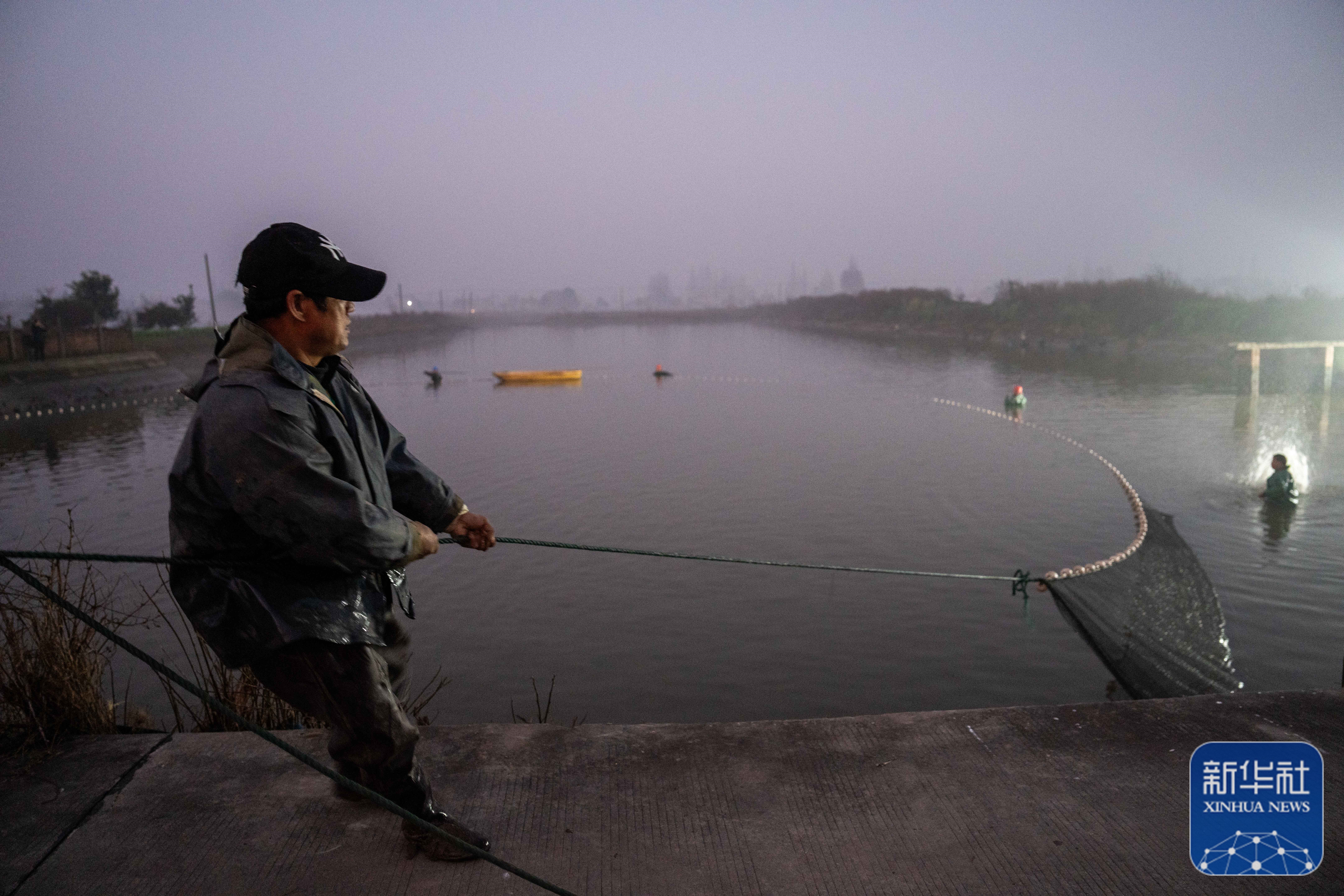 近日,湖南省益阳市武圣宫镇千亩渔场活鱼丰收,渔民加紧展开冬捕,鲜鱼打捞上岸后立即被收购供应市场。据了解,南县共有池塘养殖面积约8.4万亩、稻虾综合种养面积约62万亩,主要养殖小龙虾、四大家鱼、翘嘴、鳜鱼、黄颡鱼、龟、鳖等水产品种,2023年水产品年产量达16.2万吨。