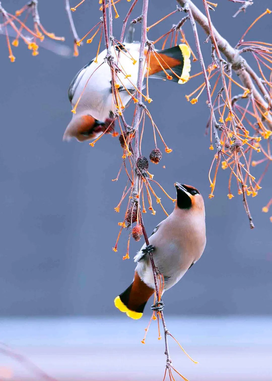 在这幅冬日的画卷中,飞鸟们是那么自由,每一个种类的鸟都以其独特的形态和行为,给这个世界添加出别样的色彩。