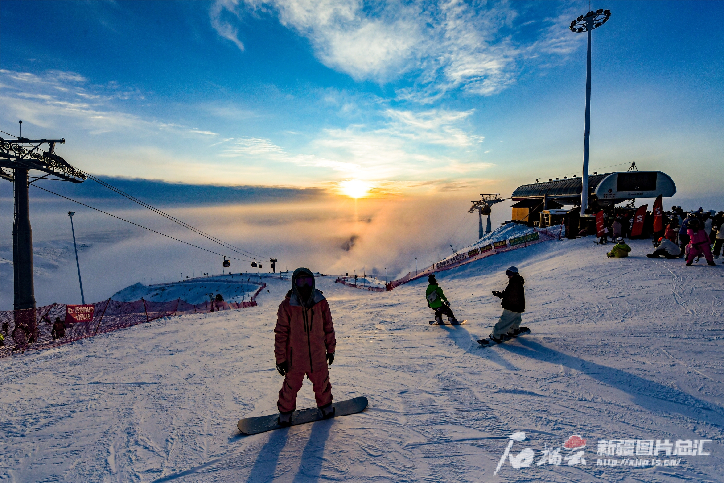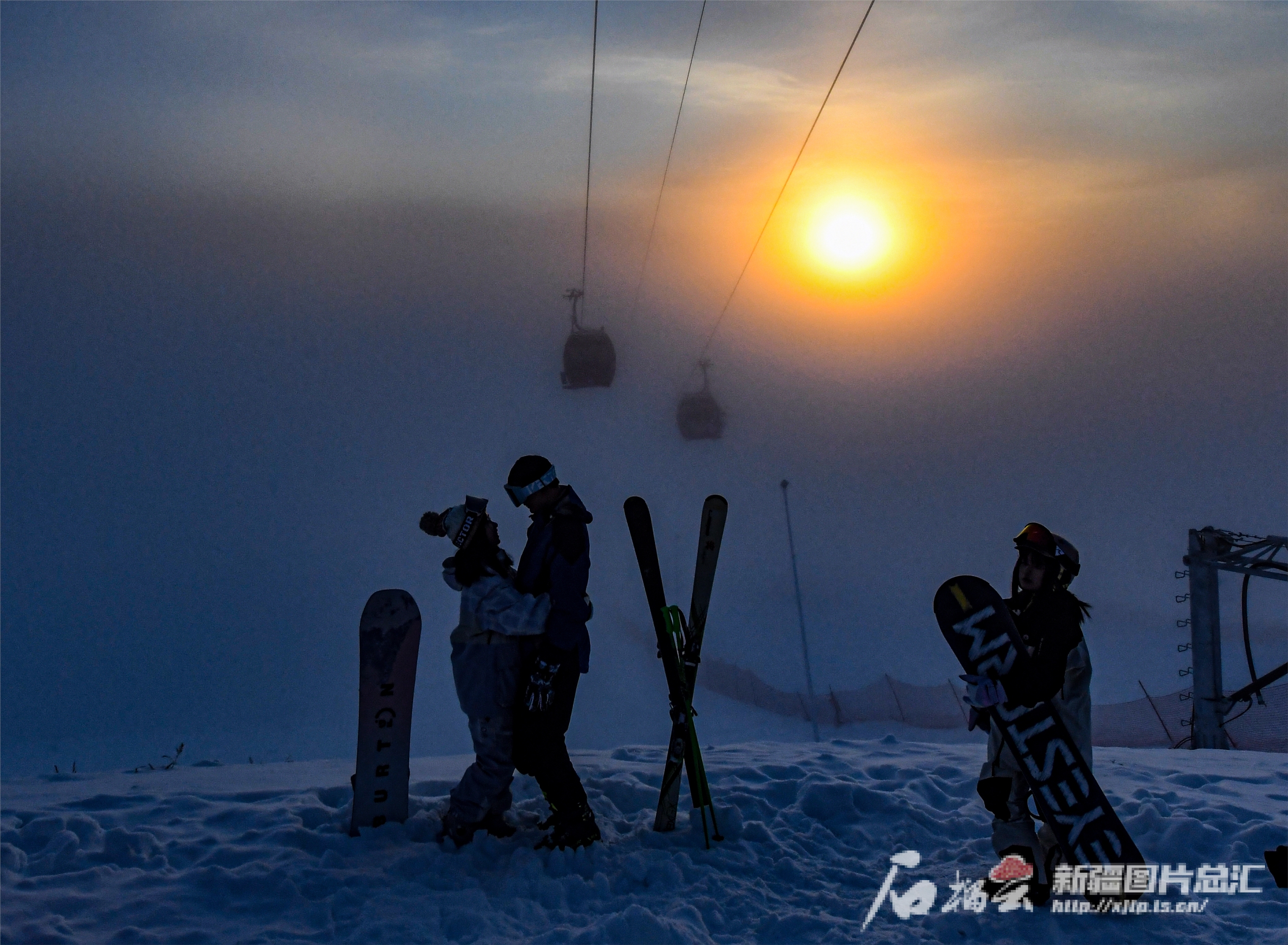 1月18日,游客在阿勒泰市将军山国际滑雪度假区看夕阳,感受“人类滑雪起源地”的冬日风情。天山网-新疆日报记者 周鹏摄