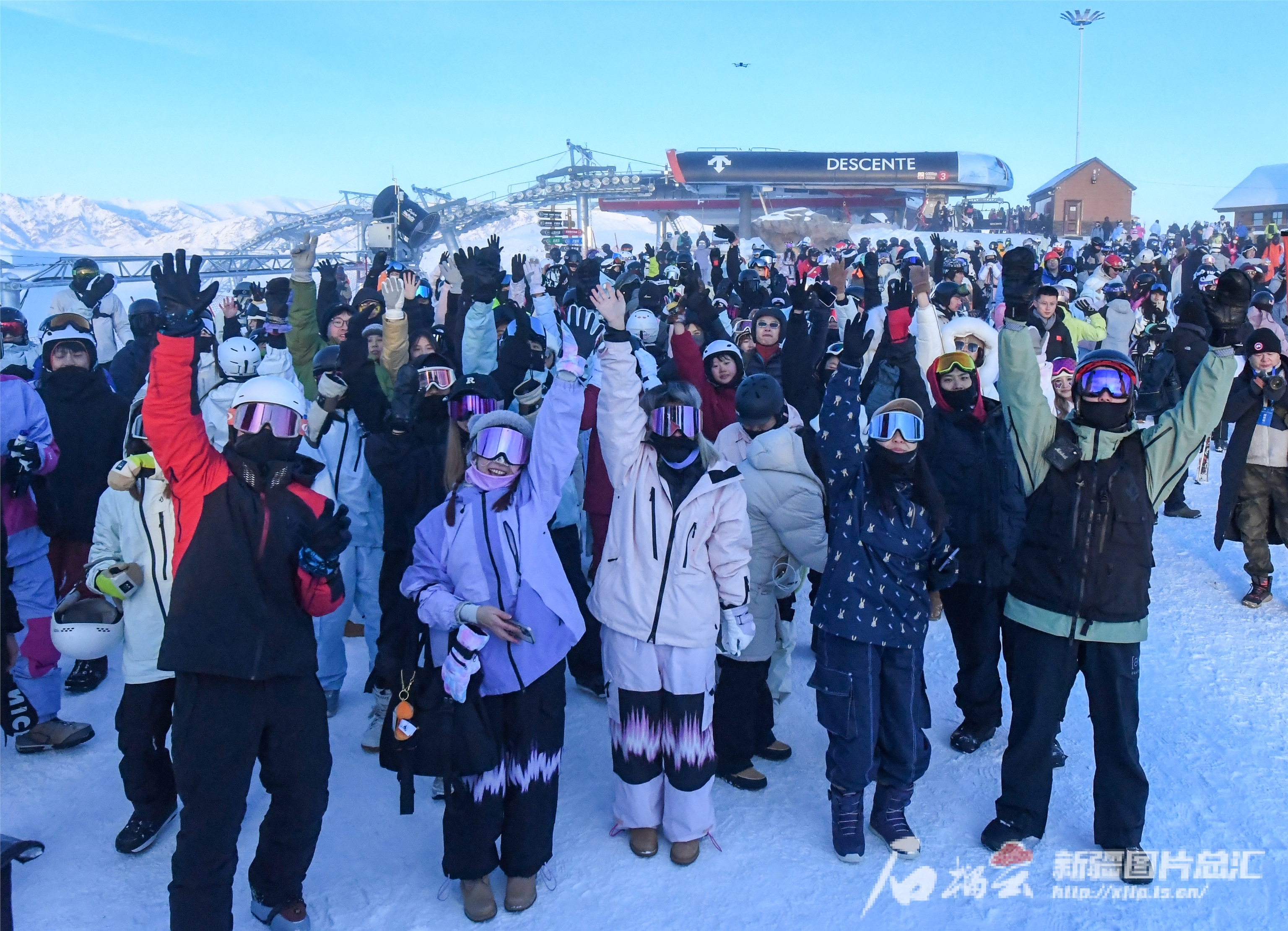 1月18日,游客在阿勒泰市将军山国际滑雪度假区跳舞。天山网-新疆日报记者 周鹏摄