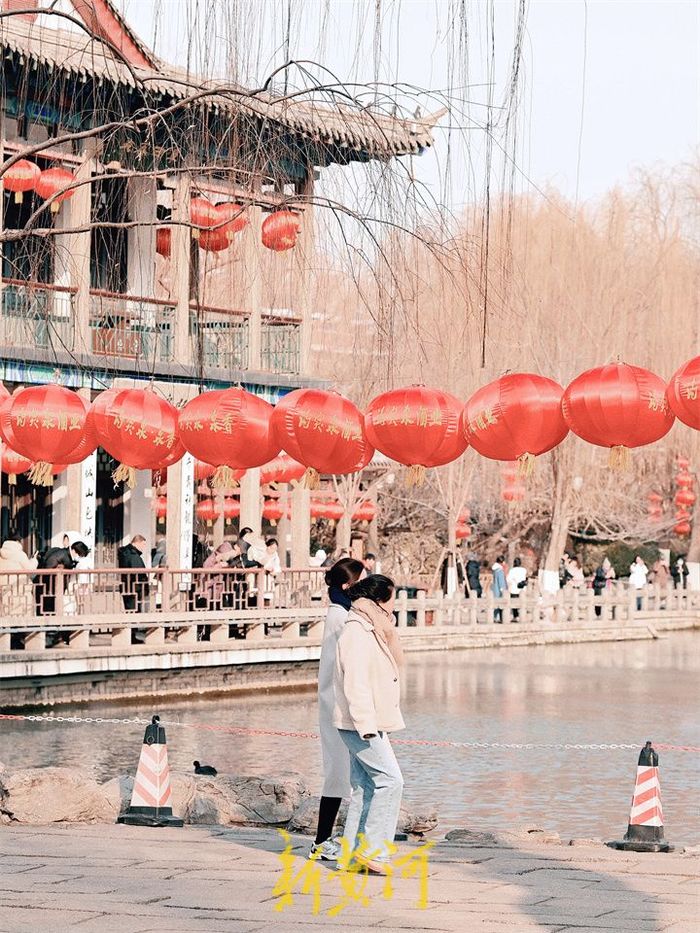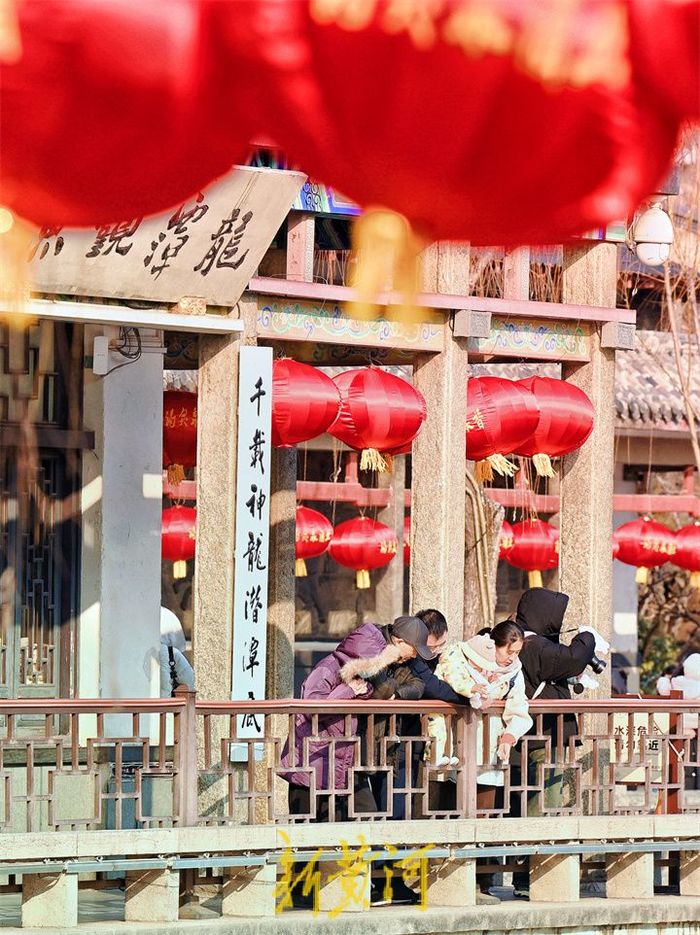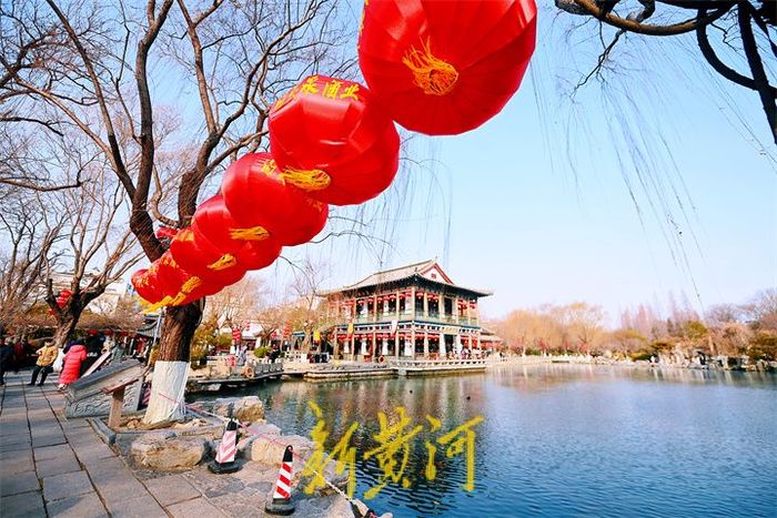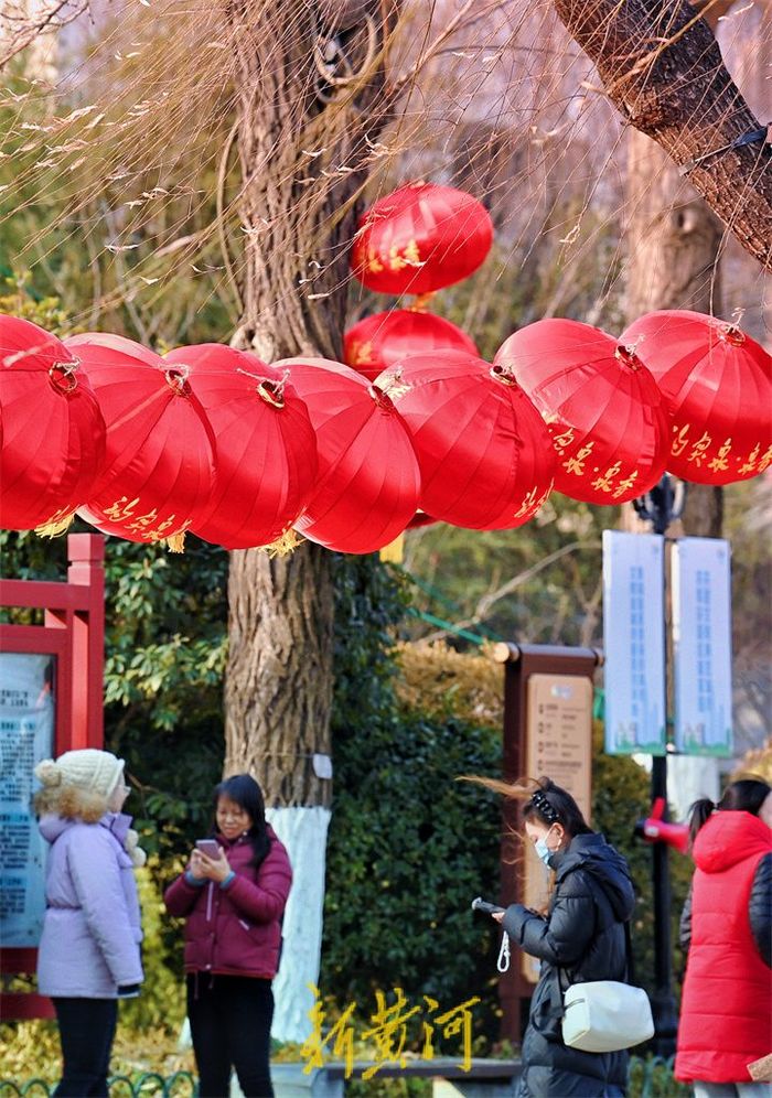 21日,五龙潭公园内大红灯笼在岸边高高挂起,迎接新年的到来,为泉城增添了吉祥喜庆的色彩,一串串红灯笼悬挂树枝上、灯柱上、屋檐下、湖水旁,鲜艳夺目,洋溢着浓浓的年味,游客们纷纷掏出手机,拍下喜庆一幕。