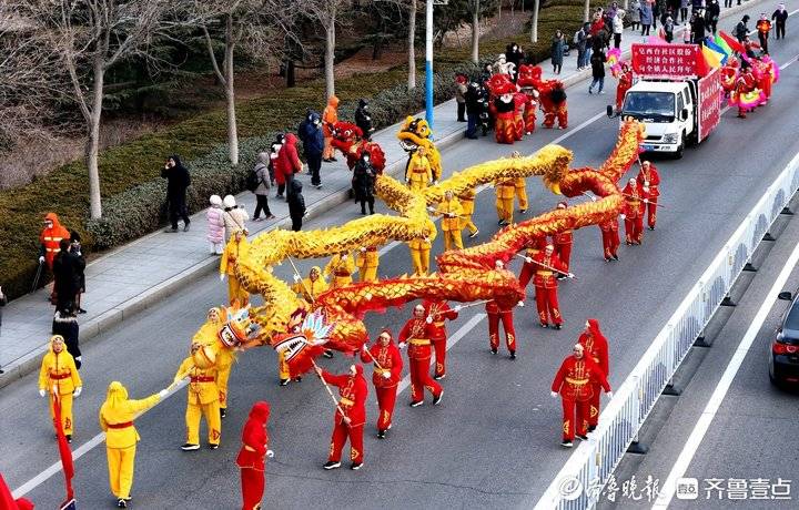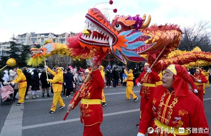 张村镇迎新春民俗文化活动热闹上演,各种舞龙、耍狮子、划旱船、骑毛驴和扭秧歌等非遗项目表演活灵活现精彩纷呈,为广大群众奉上传统特色的精神文化大餐,营造了喜庆文明、温馨和谐的节日文化氛围。