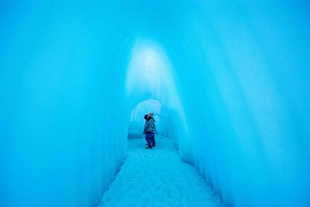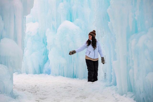 2月1日,在美国新罕布什尔州北伍德斯托克,一名游客游览冰雪城堡。新华社/法新