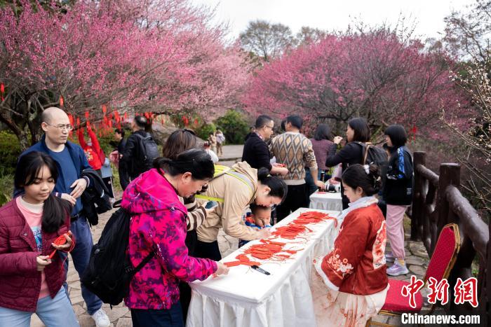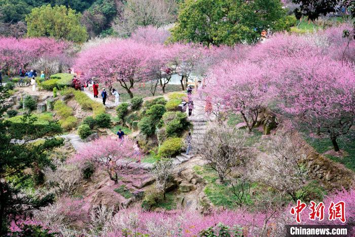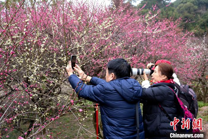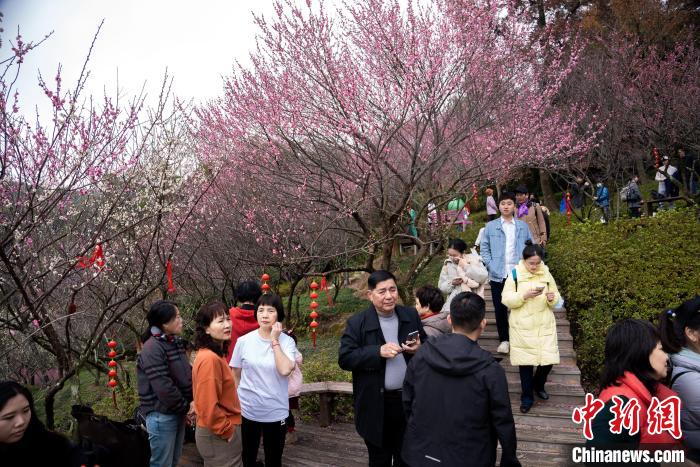 图为市民、游客在福州鼓山梅里景区赏梅。宗威摄