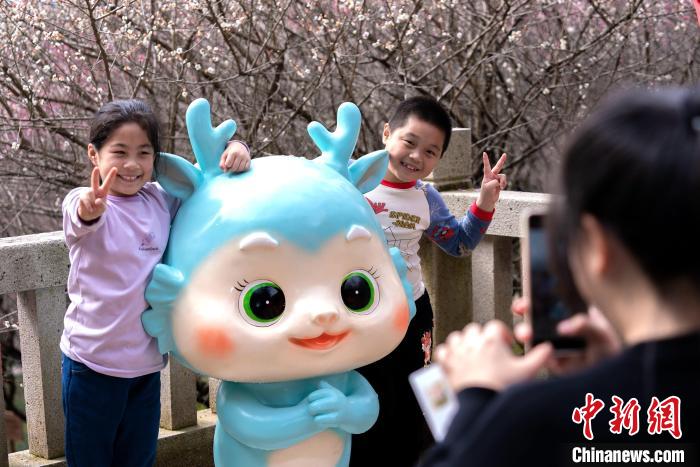 图为龙元素雕塑吸引小朋友拍照。宗威摄
