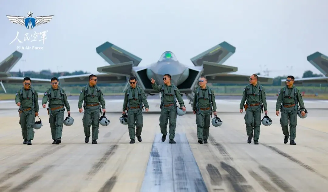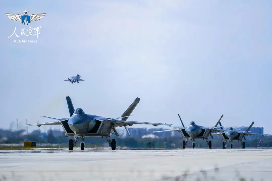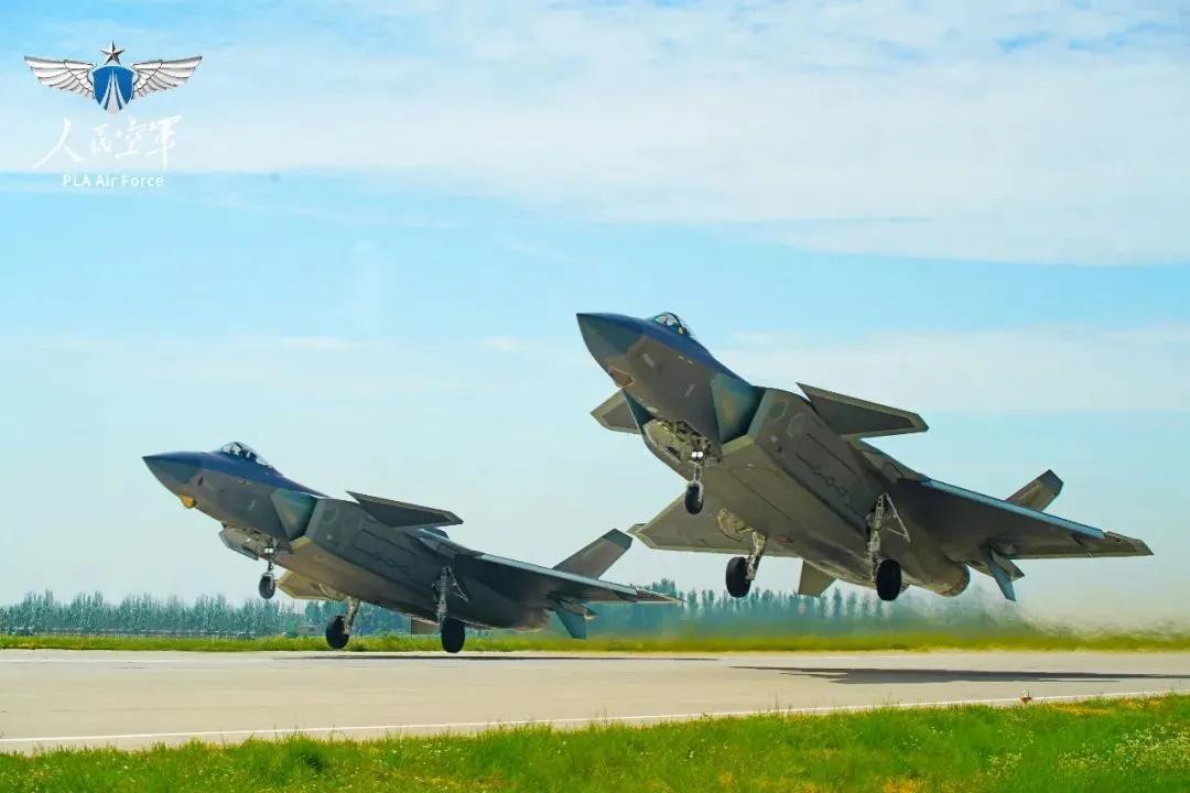空军“王海大队”飞行员驾驶歼-20战机编队起飞。王鸿飞 摄