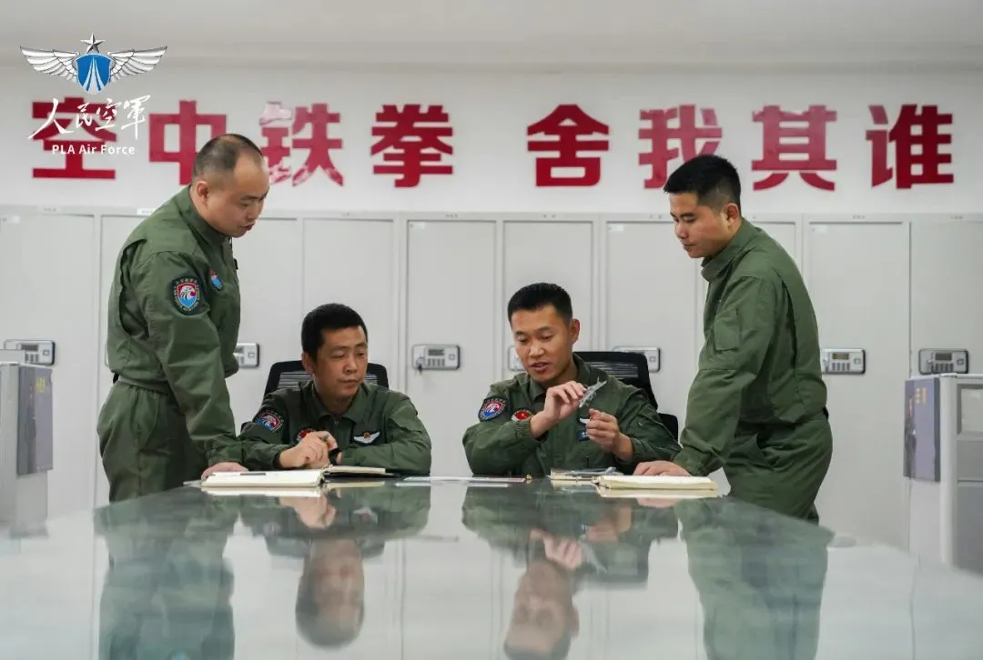 空军”王海大队”飞行员进行空战战术复盘研究。师勇进 摄