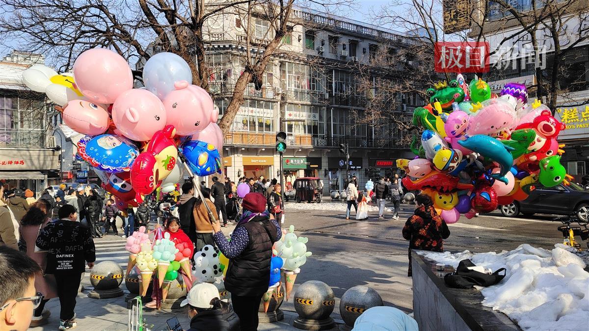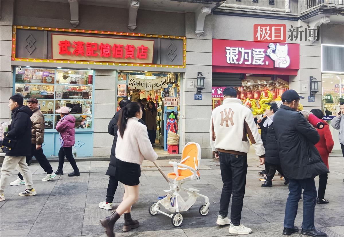 2月9日,雪后初晴,艳阳高照,江汉路步行街上彩灯高挂,欢快的歌曲随处可闻,街头洋溢浓浓的春节氛围。许多留在武汉过年的市民和来武汉的游客们,拖家带口,边逛边玩,寻找浓浓的年味。