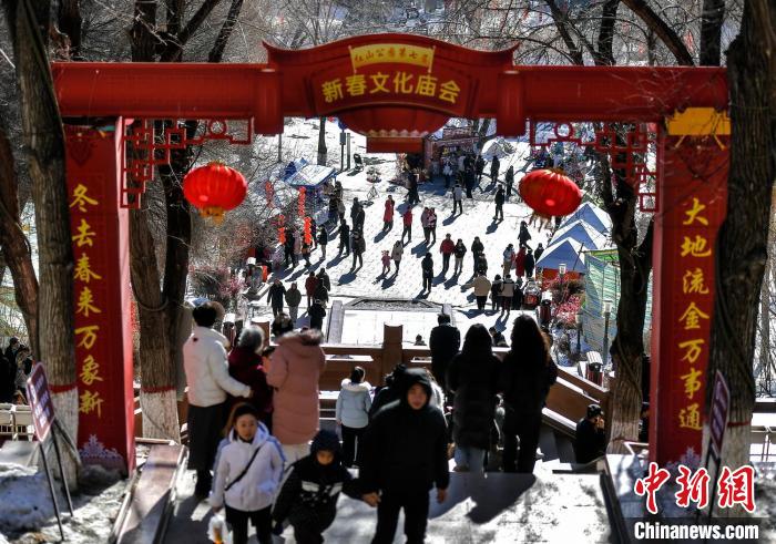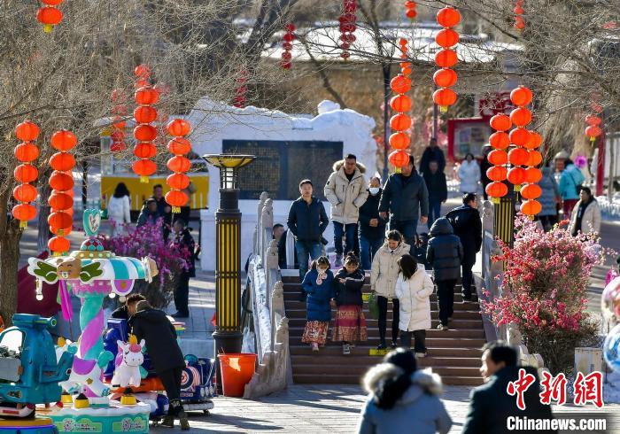 2月11日,新疆乌鲁木齐市红山公园游人如织,该公园举办的新春文化庙会吸引众多市民来此品美食、猜灯谜,看戏曲、观社火。