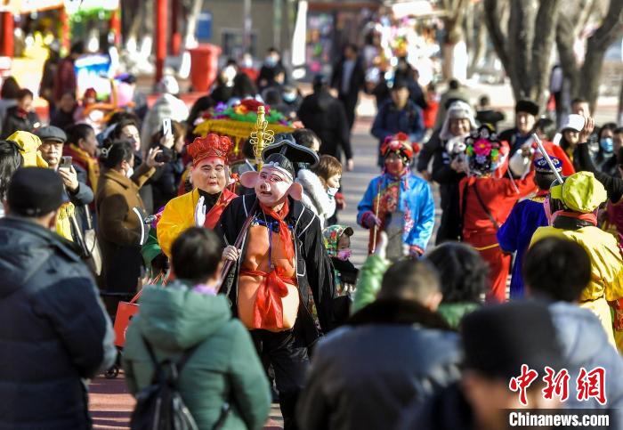 传统社火表演吸引市民围观。 中新网记者刘新摄
