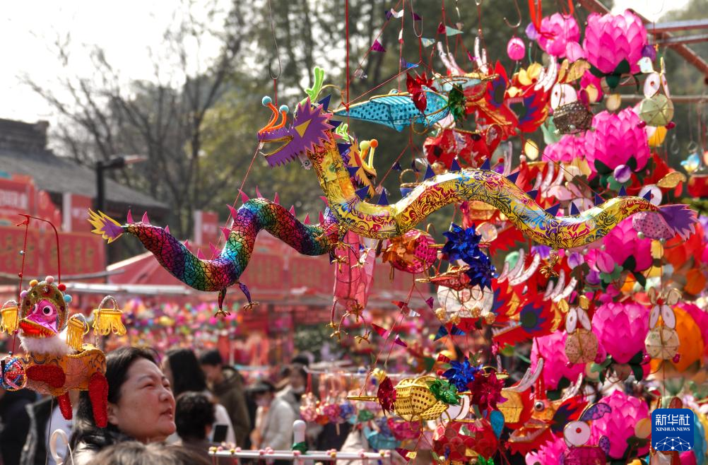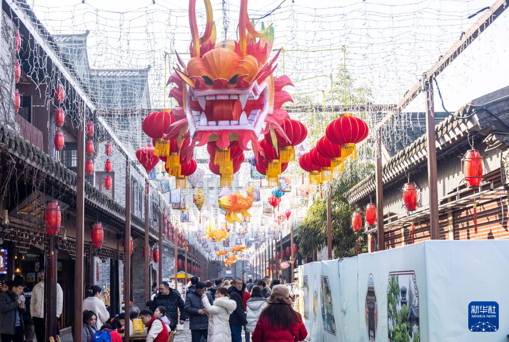 2月11日,游客在安徽省合肥市肥西县三河古镇景区观赏龙元素花灯。新华社发(徐勇摄)