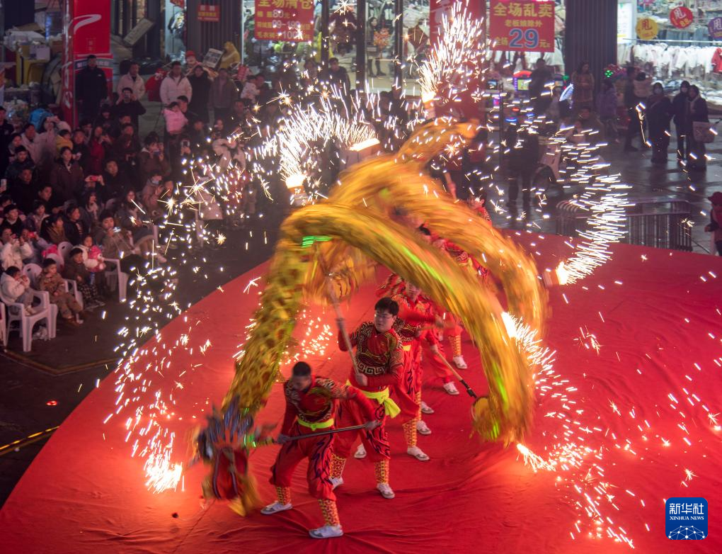 2月11日,安徽省宿州市砀山县举行传统舞火龙表演,欢庆新春佳节。新华社发(崔猛摄)