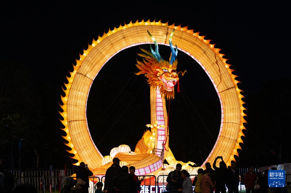 2月10日在海口市万绿园万春会上拍摄的龙型花灯。新华社记者蒲晓旭摄