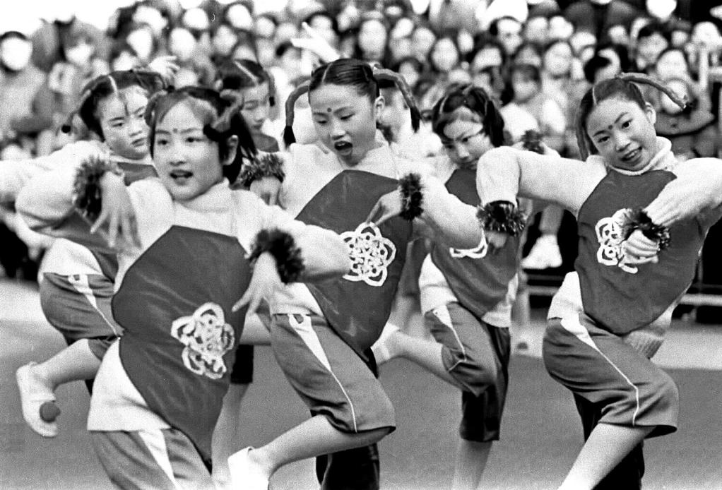 1988年北京龙潭春节庙会上,小贩刘长坤(左)制作的玉米球花,形状、味道都招人喜爱。 在合肥市城隍庙举行的1998年新春庙会上,合肥市双岗小学的学生表演舞蹈《中国娃》。