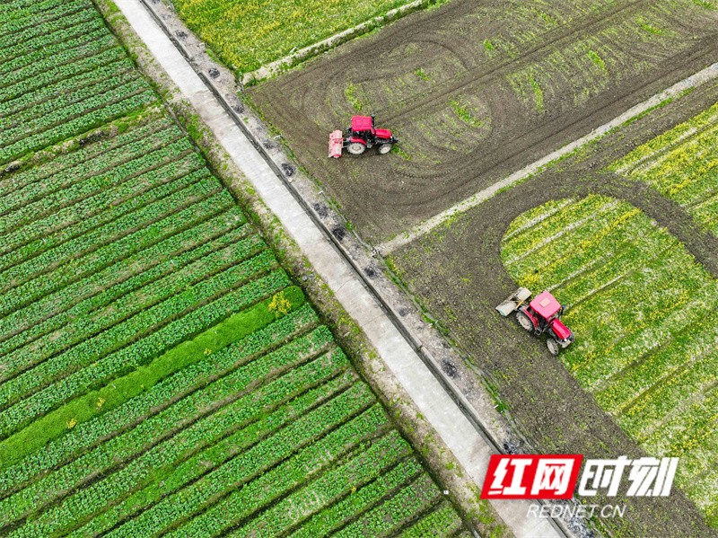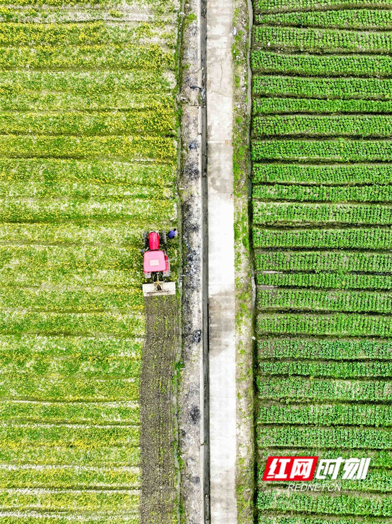 红网时刻新闻2月19日讯(通讯员蒋克青)2024年2月18日,在湖南省永州市道县清塘镇室家村蔬菜基地,一边是农民驾驶农机在翻耕农田,一边是农民在采收蔬菜。雨水节气将近,当地农民抢抓农时开展农事活动,田间地头呈现出一派生机勃勃的农忙景象。