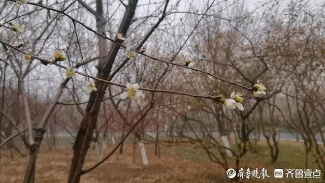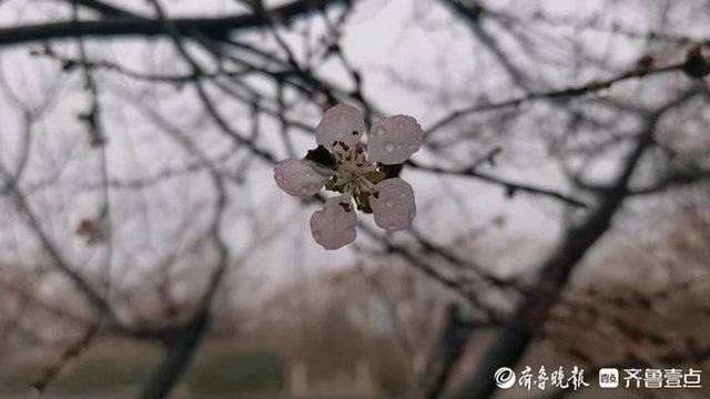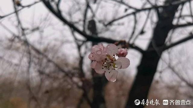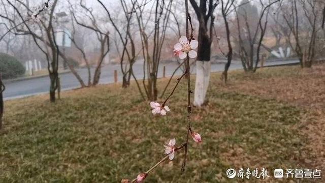 18日,记者在济南千佛山公园看到,靠近文昌阁附近的几棵桃树已经开花了。当时,伴随着蒙蒙细雨,带着雨滴的花蕊甚是娇艳。园林专家说,这些是山桃花,山桃花开花比较早,碧桃则是在3月的中下旬开花。