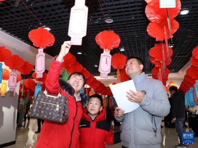 2月22日,在江苏省太仓市璜泾镇雅鹿村,人们在迎元宵活动上猜灯谜。