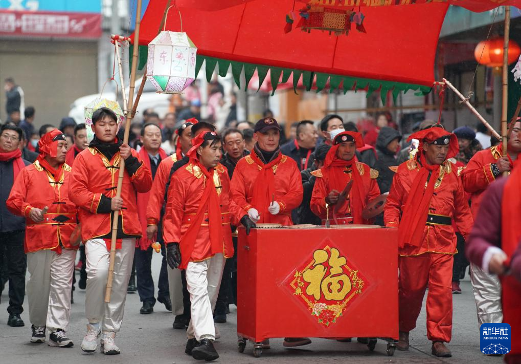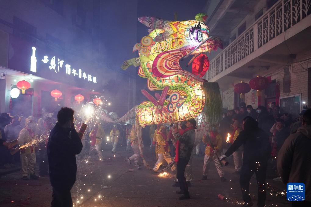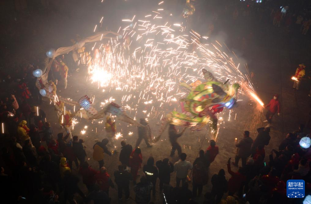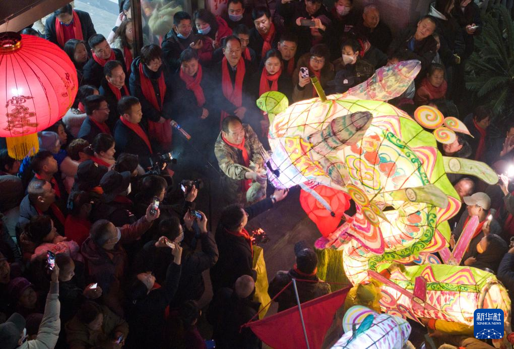 2月22日,人们在旬阳市神河镇进行神河懒龙点睛仪式(无人机照片)。